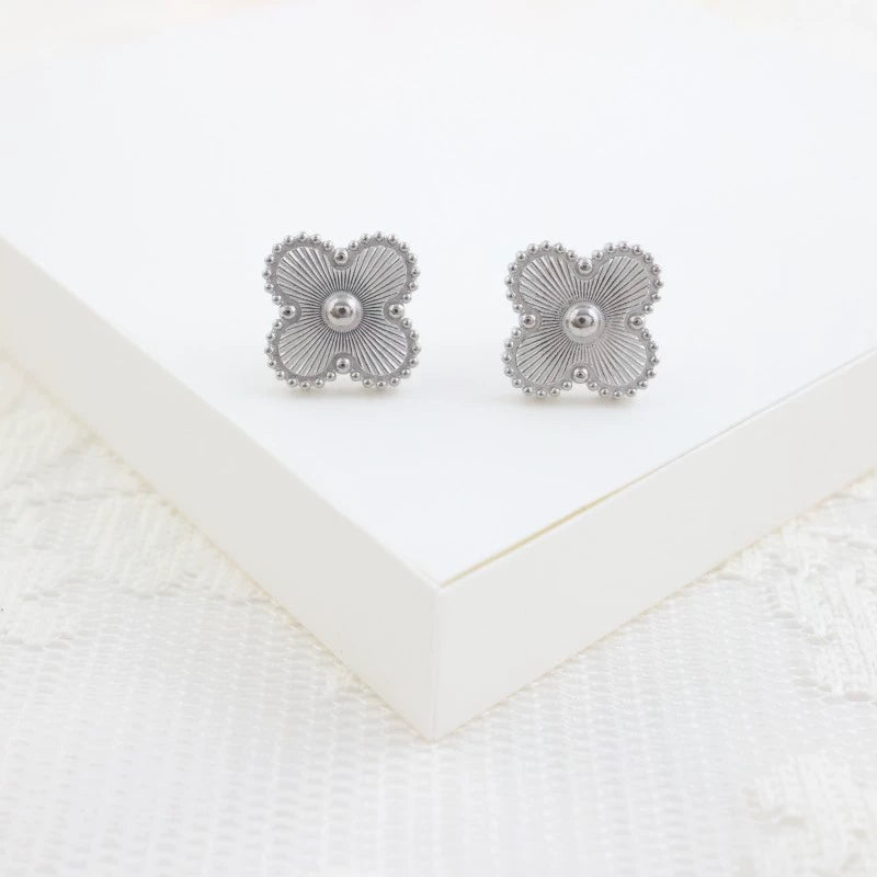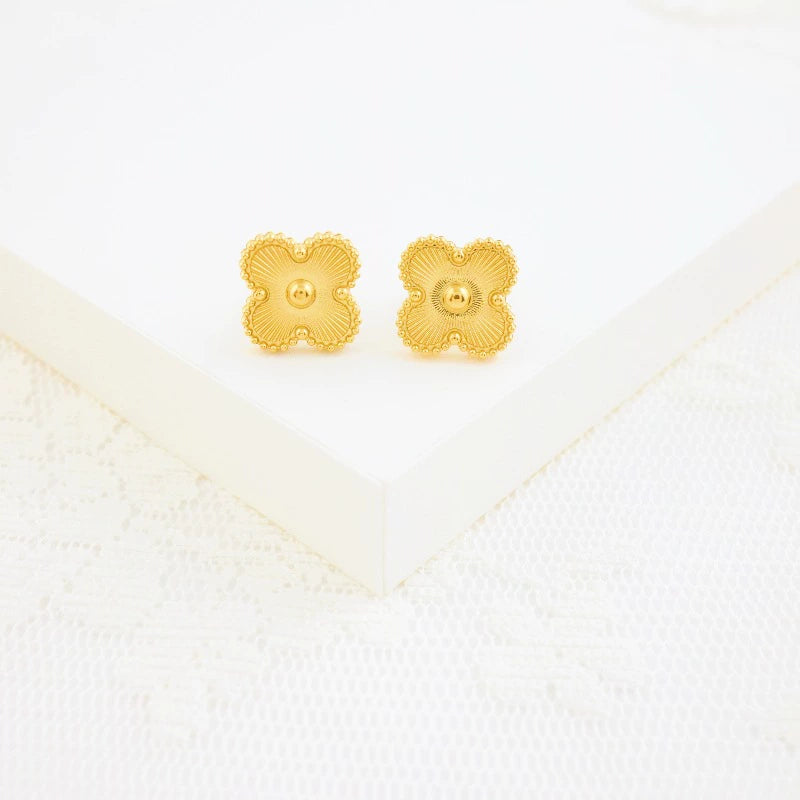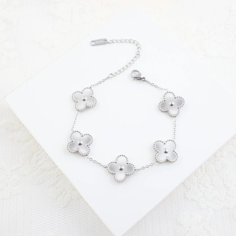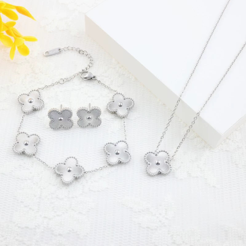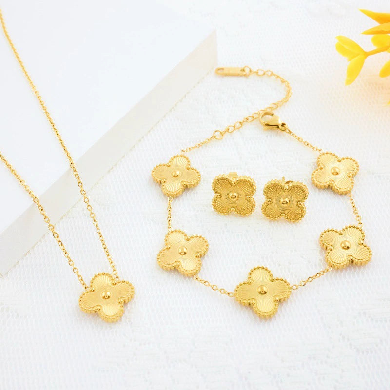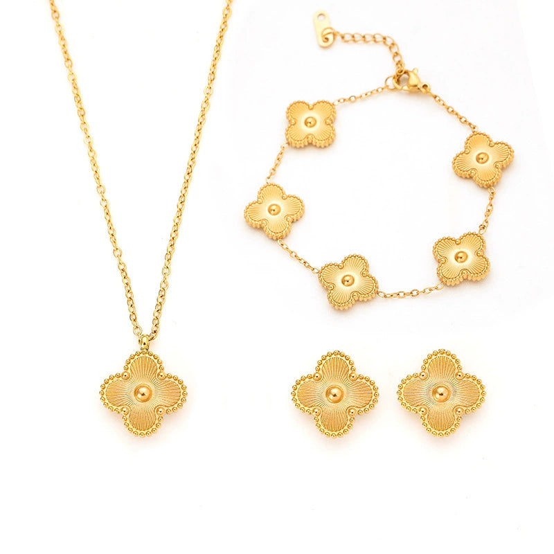 Wholesale Jewelry Stainless Steel Fourleaf Clover Electroplated Ochain Necklace Earrings Bracelet Set For Women