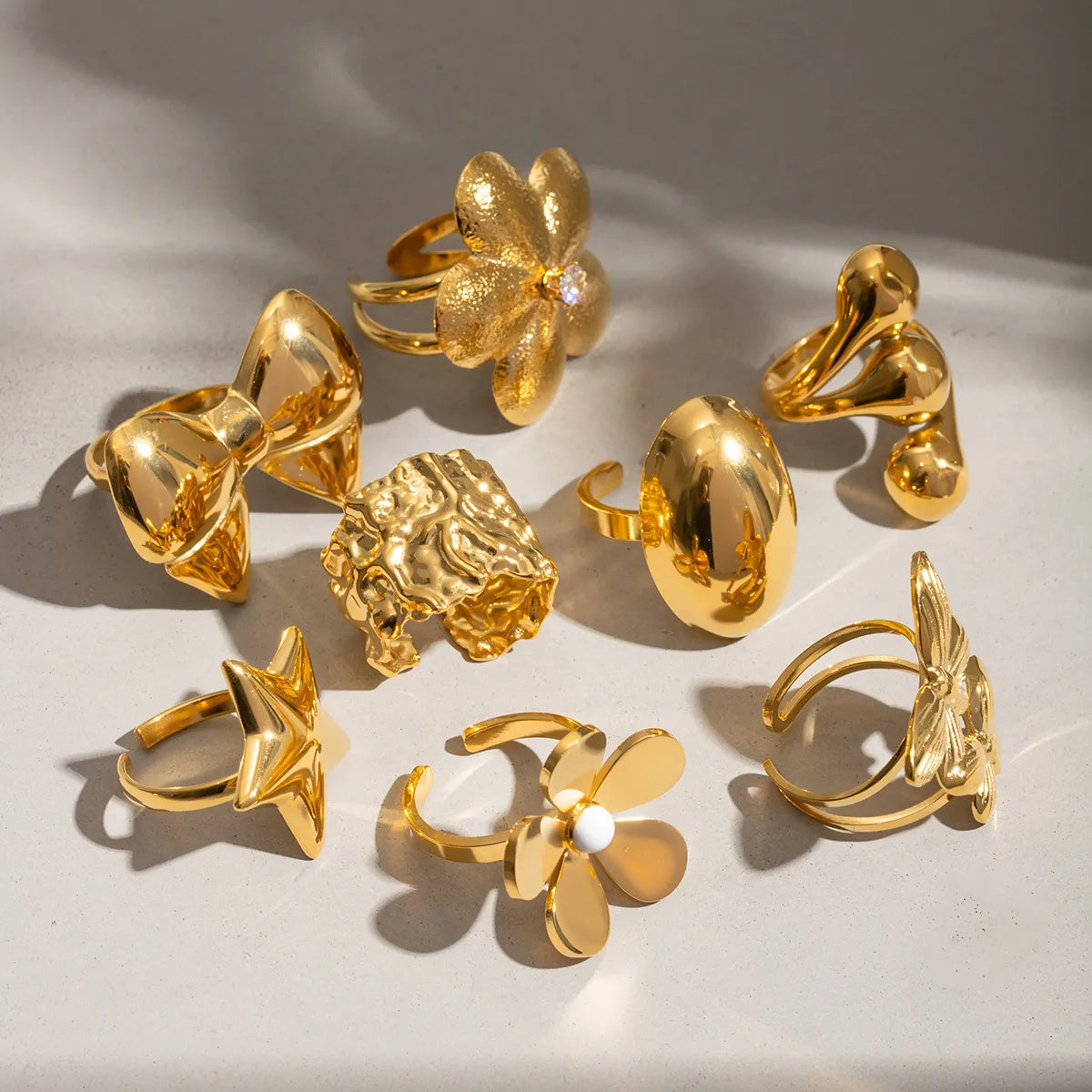Wholesale Jewelry Sweet Artistic Pentagram Flower Bow Knot 304 Stainless Steel Open Rings