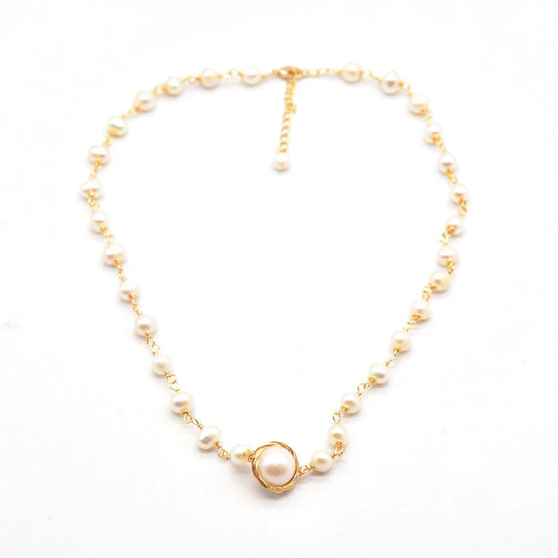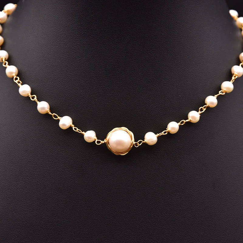 Wholesale Natural Freshwater Pearl Wirewound Retro Ethnic Style Handmade Clavicle Chain Jewelry For Women With Geometric Design And Electroplating