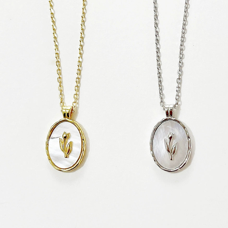 Wholesale Necklace 925 Sterling Silver Geometric Oval Tulip Shell Pendant Simple Style
