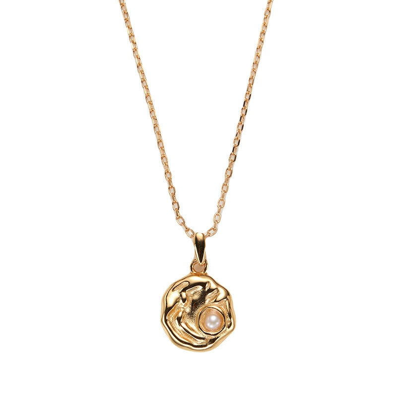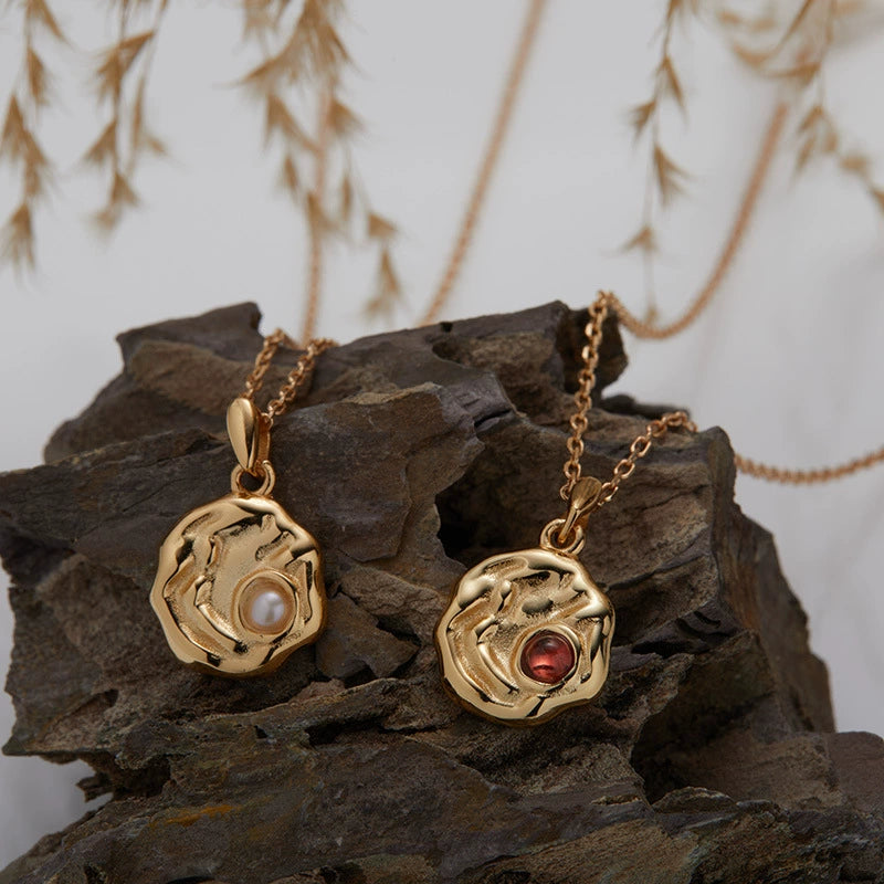 Wholesale Necklace 925 Sterling Silver Natural Pearl Garnet Light Luxury Geometric Round Pendant