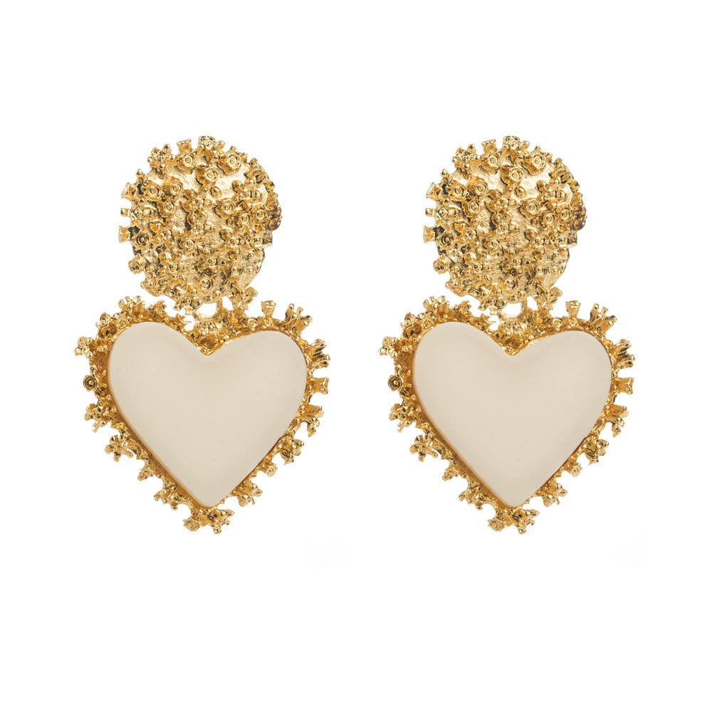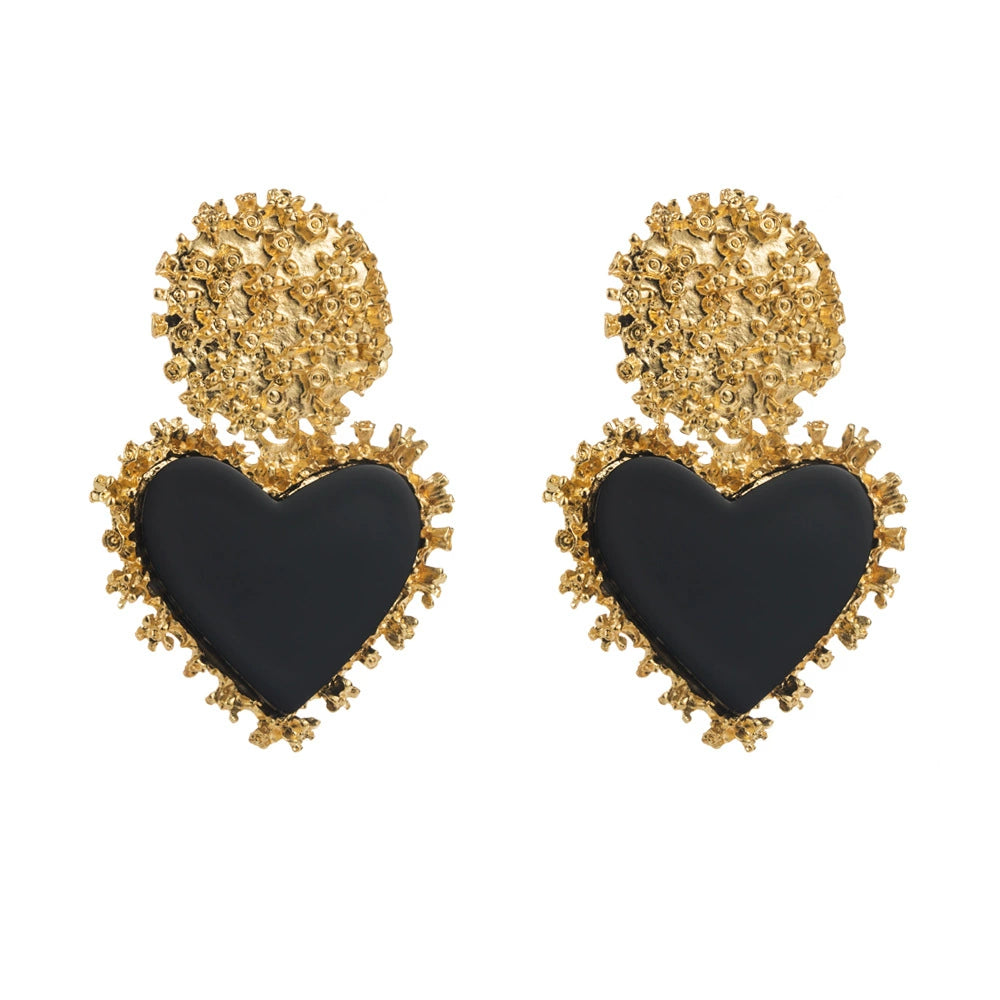 Wholesale Retro Alloy Resin Heart Pendant Microinlay Earrings