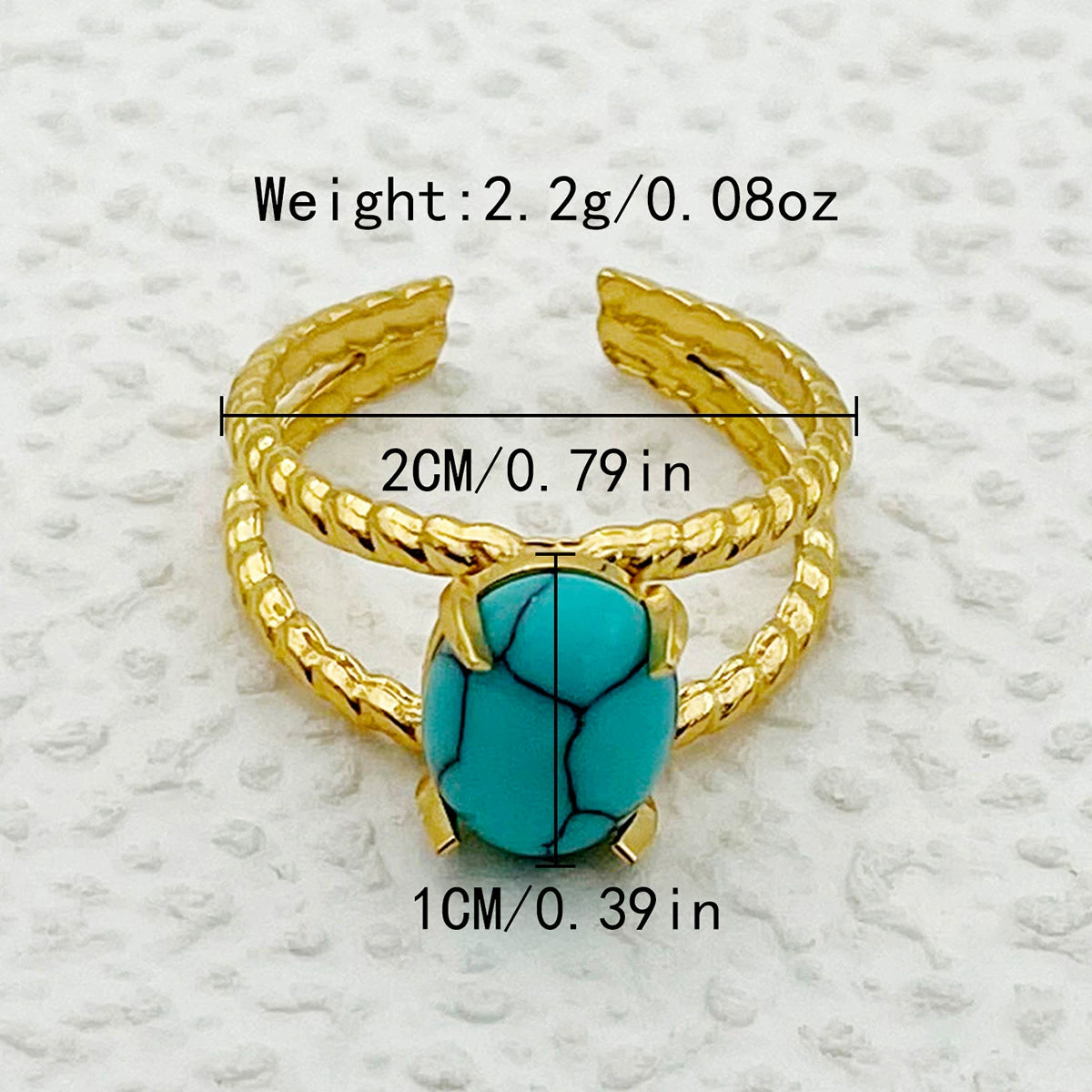 Wholesale Ring Natural Turquoise Stainless Steel Geometric Electroplated Fashion Allmatch Open