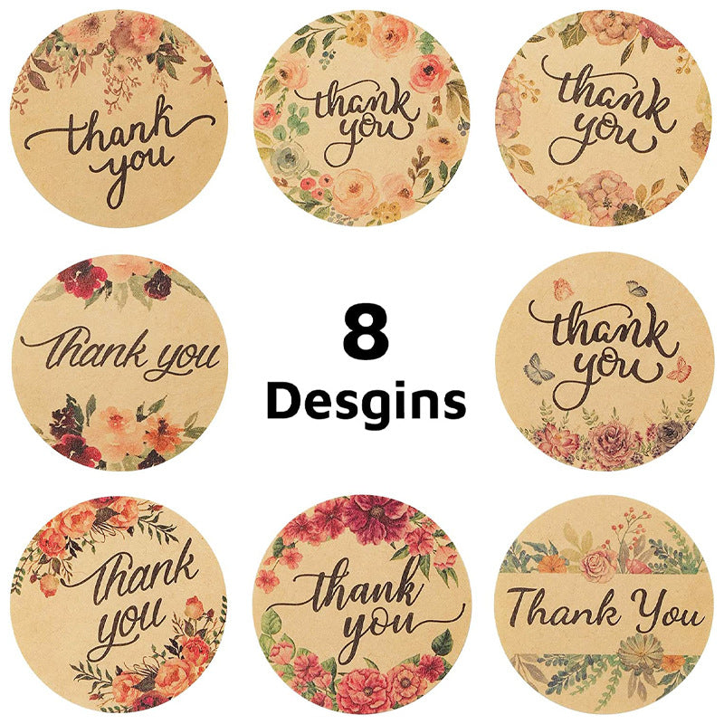 wholesale rose flower kraft paper thanks sticker gift packaging sealing sticker decorative sticker label