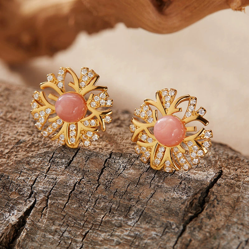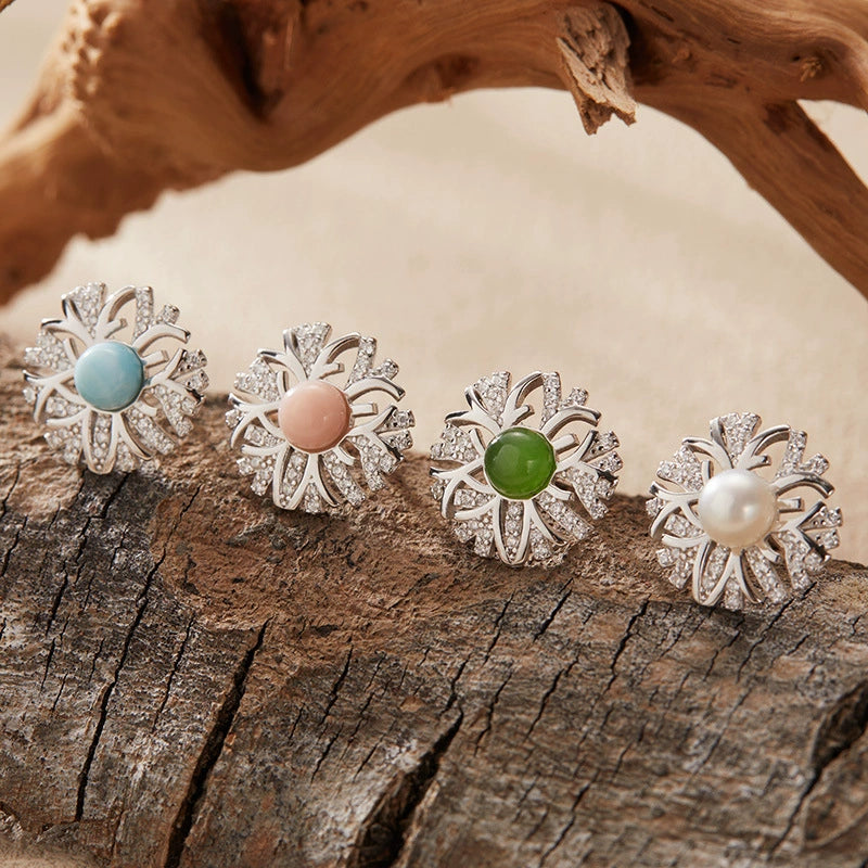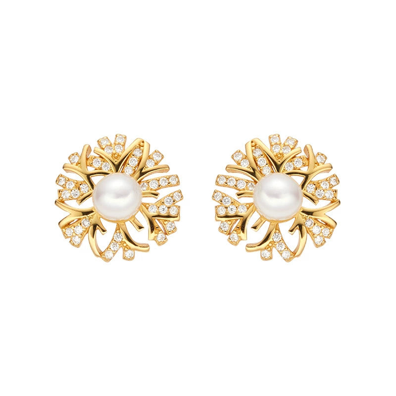 Wholesale S925 Sterling Silver Inlaid Natural Pearl Flower Leaf Design Earrings