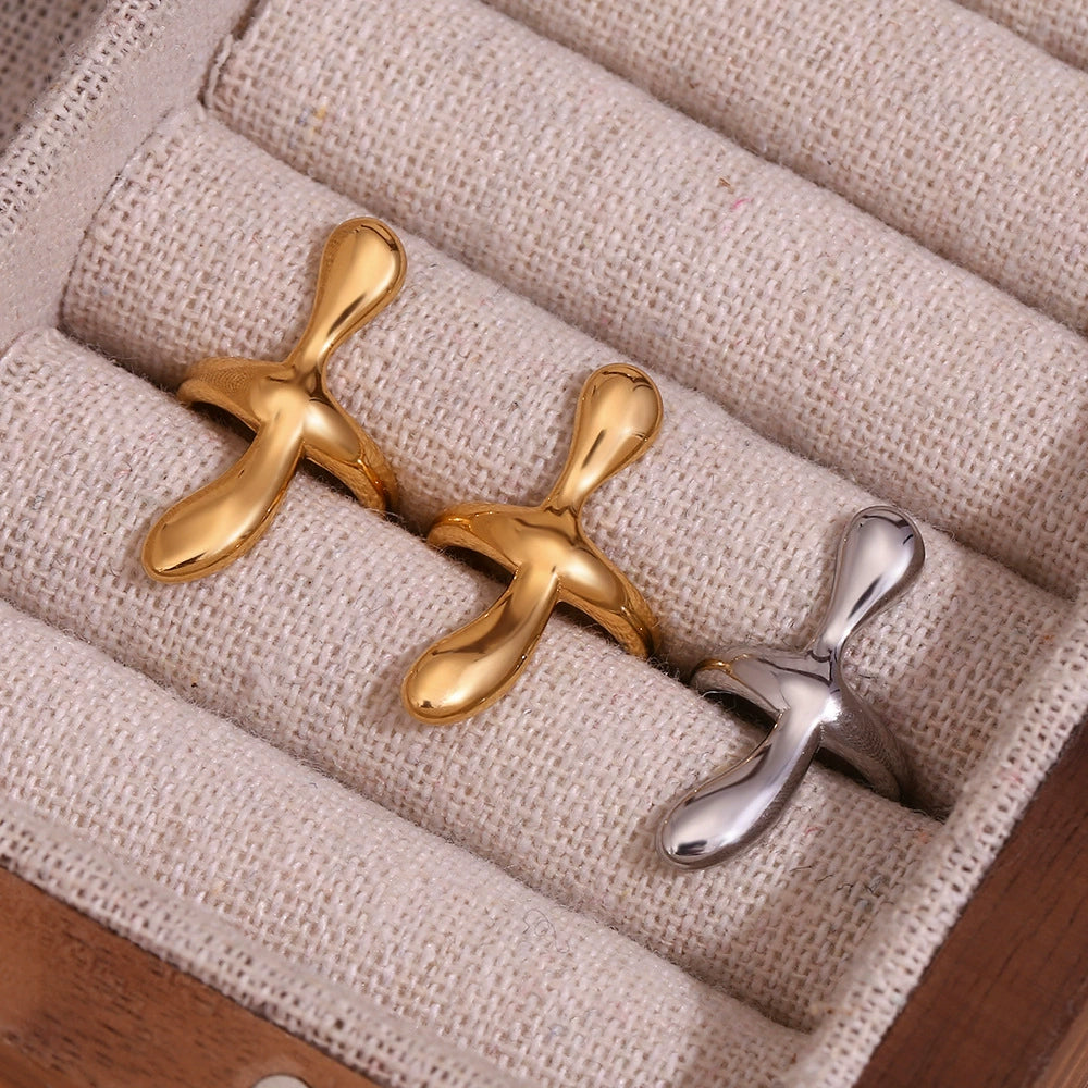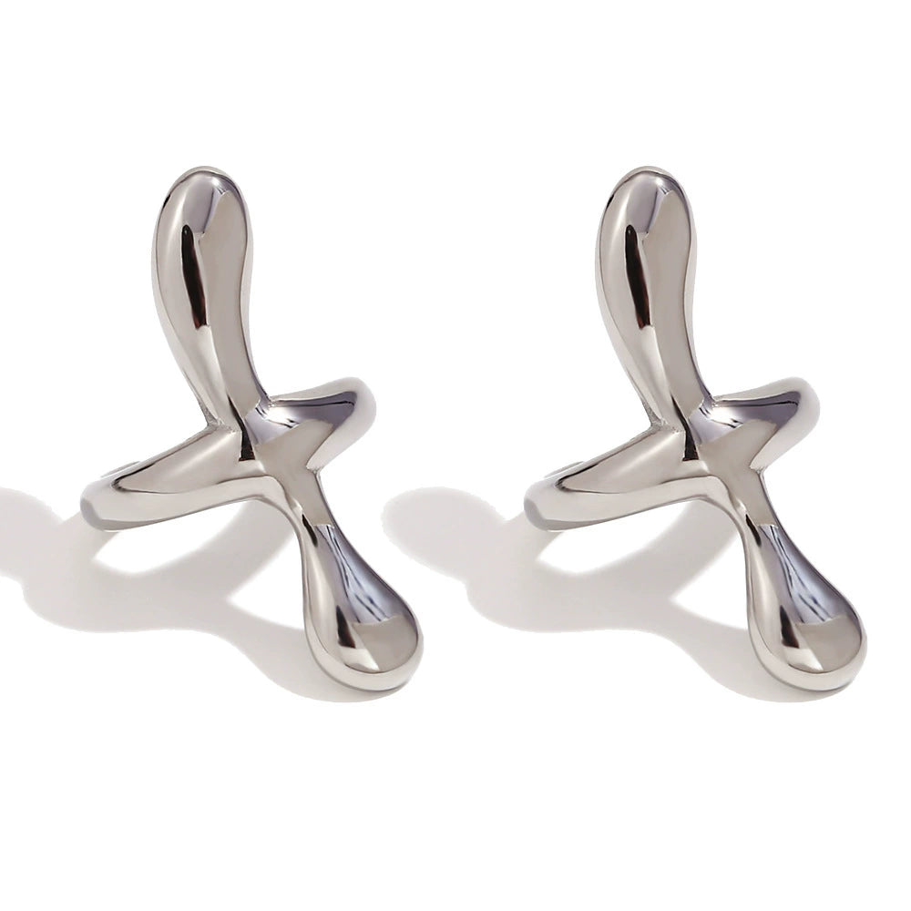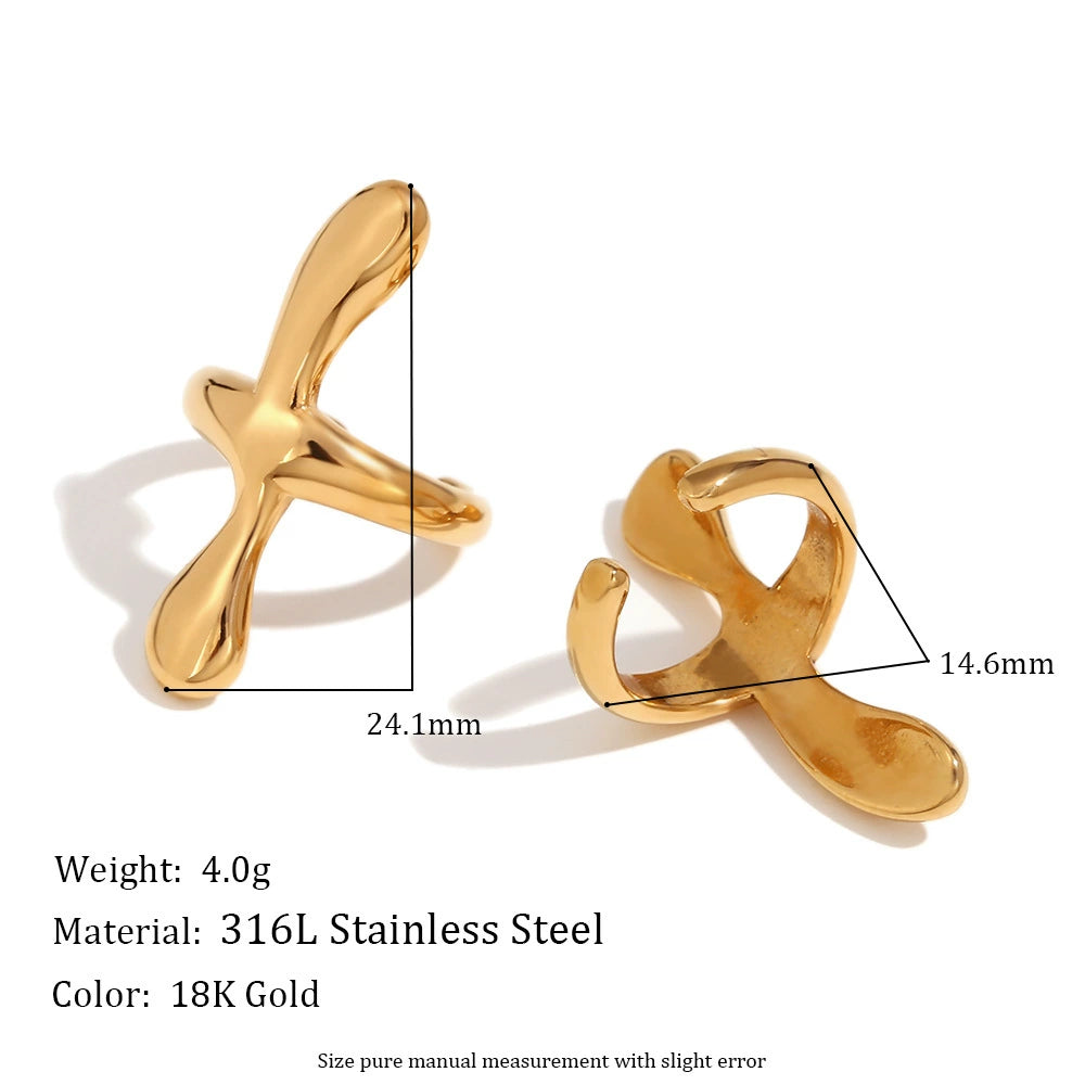 Wholesale Simple Niche Personality Fashion Women's Stainless Steel 18K Gold Plated Geometric Cross Ear Clip Earrings