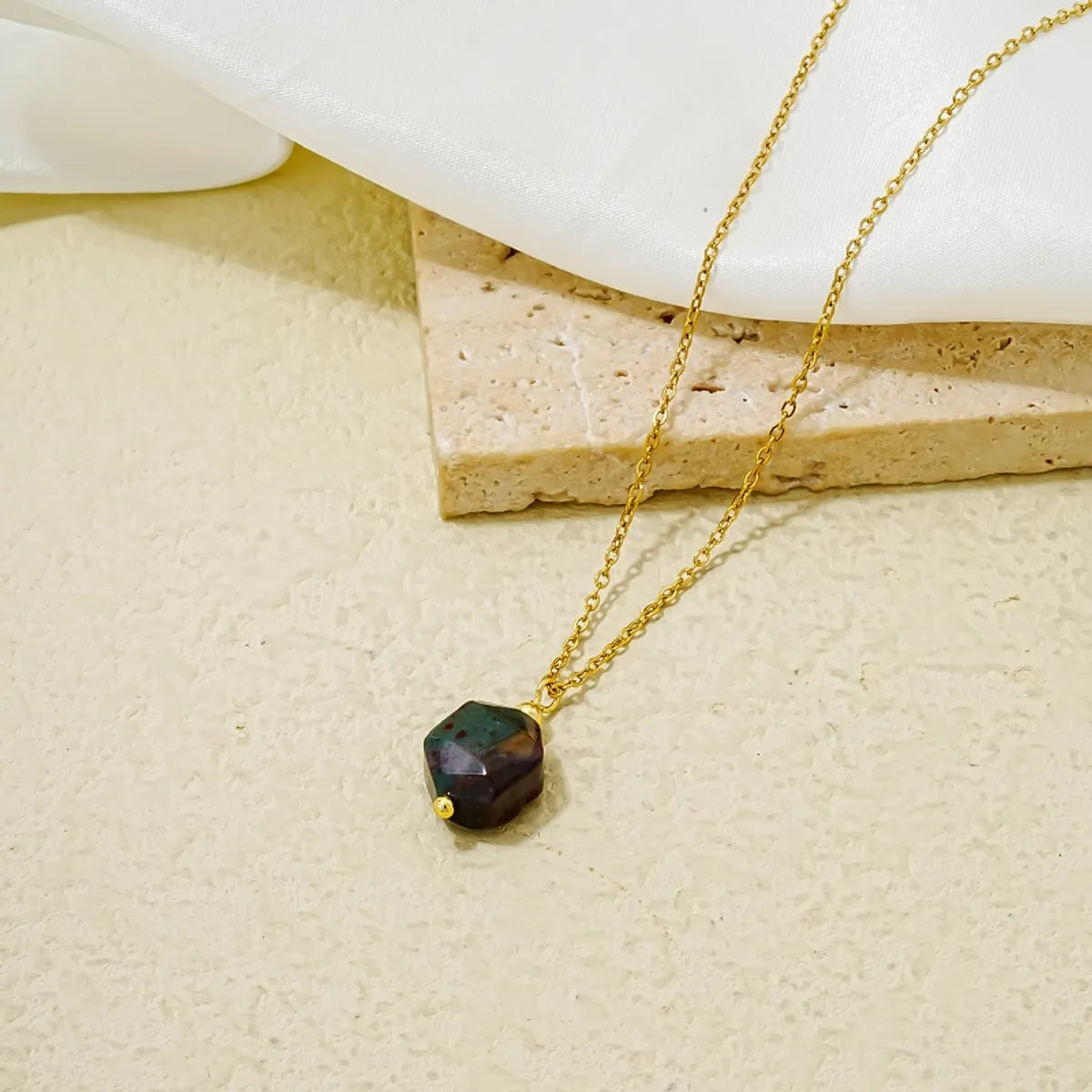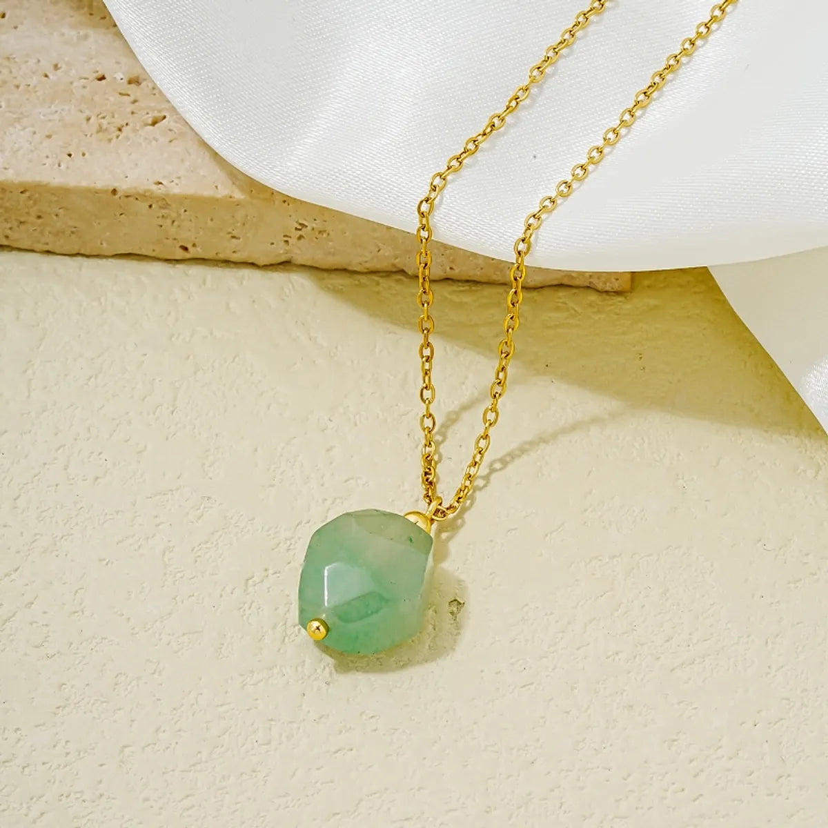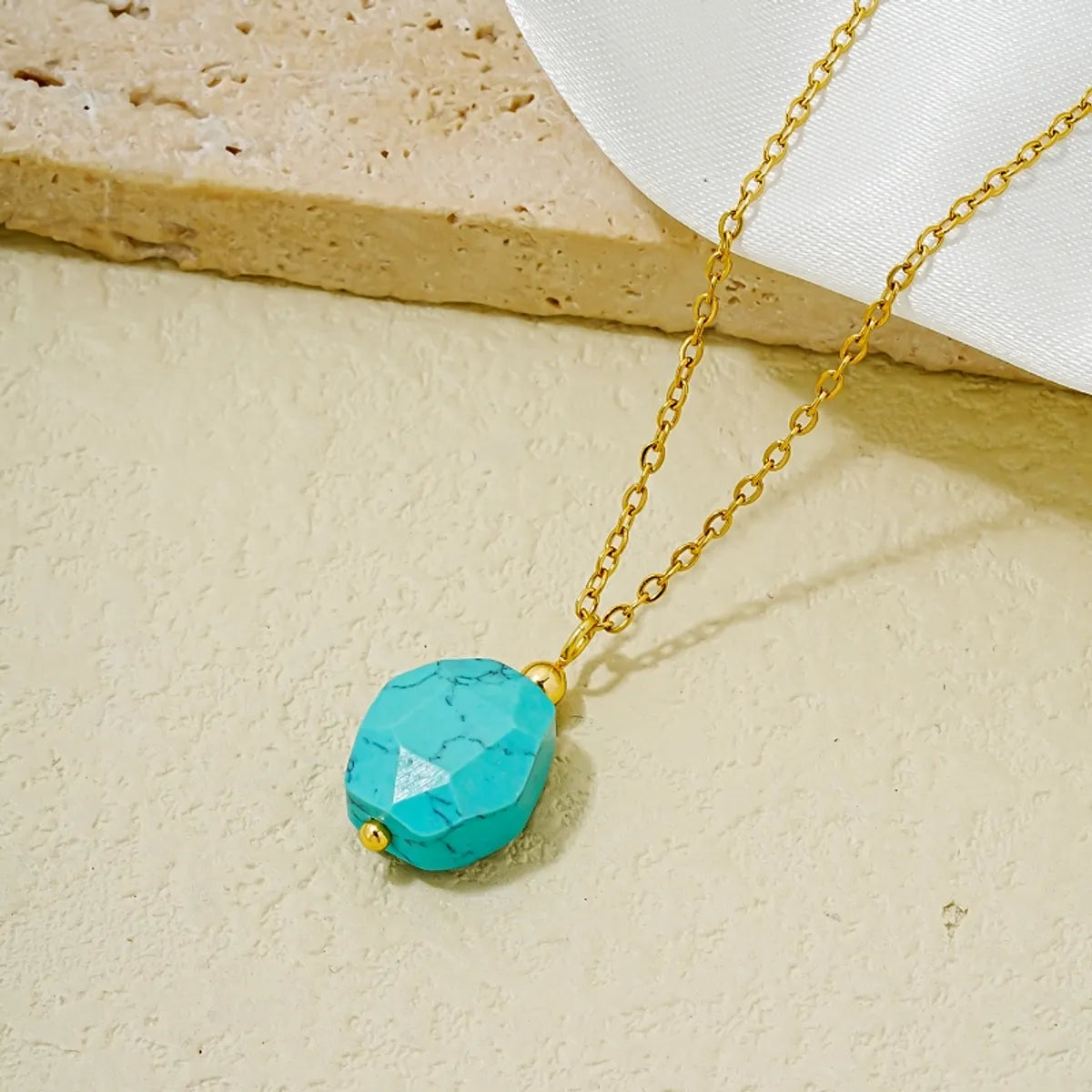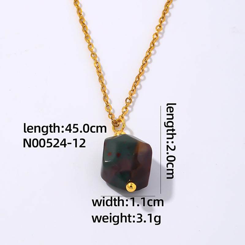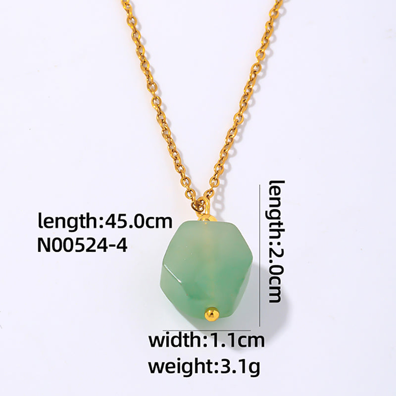 Wholesale Simple Style Geometric Rhombus Stainless Steel Natural Stone Plating Chain Pendant Necklace