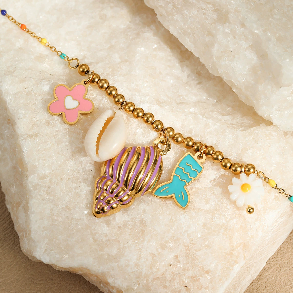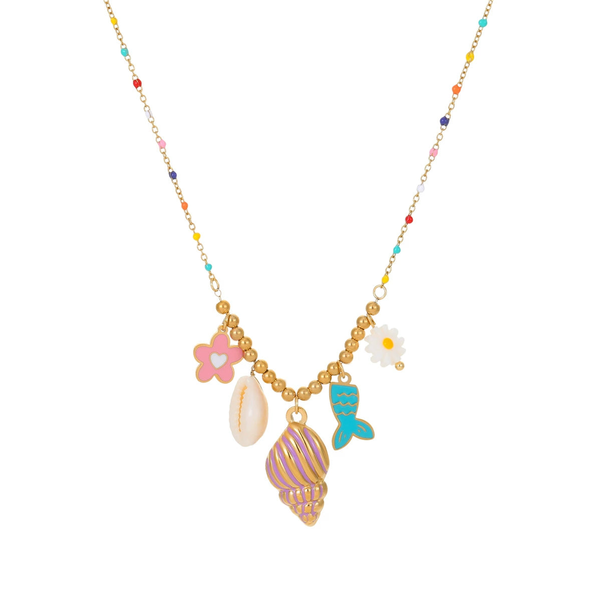 Wholesale Stainless Steel And Titanium Steel Women's Marine Series Clavicle Chain With Geometric Pattern And Oil Dropping Design Electroplated