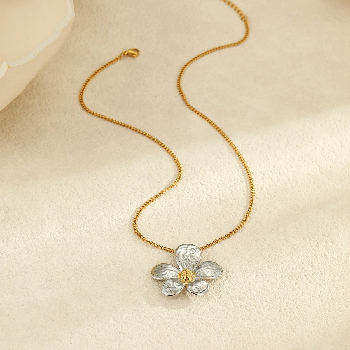 Wholesale Stainless Steel Flower Geometric Pendant Necklace With 18K Plating For Women