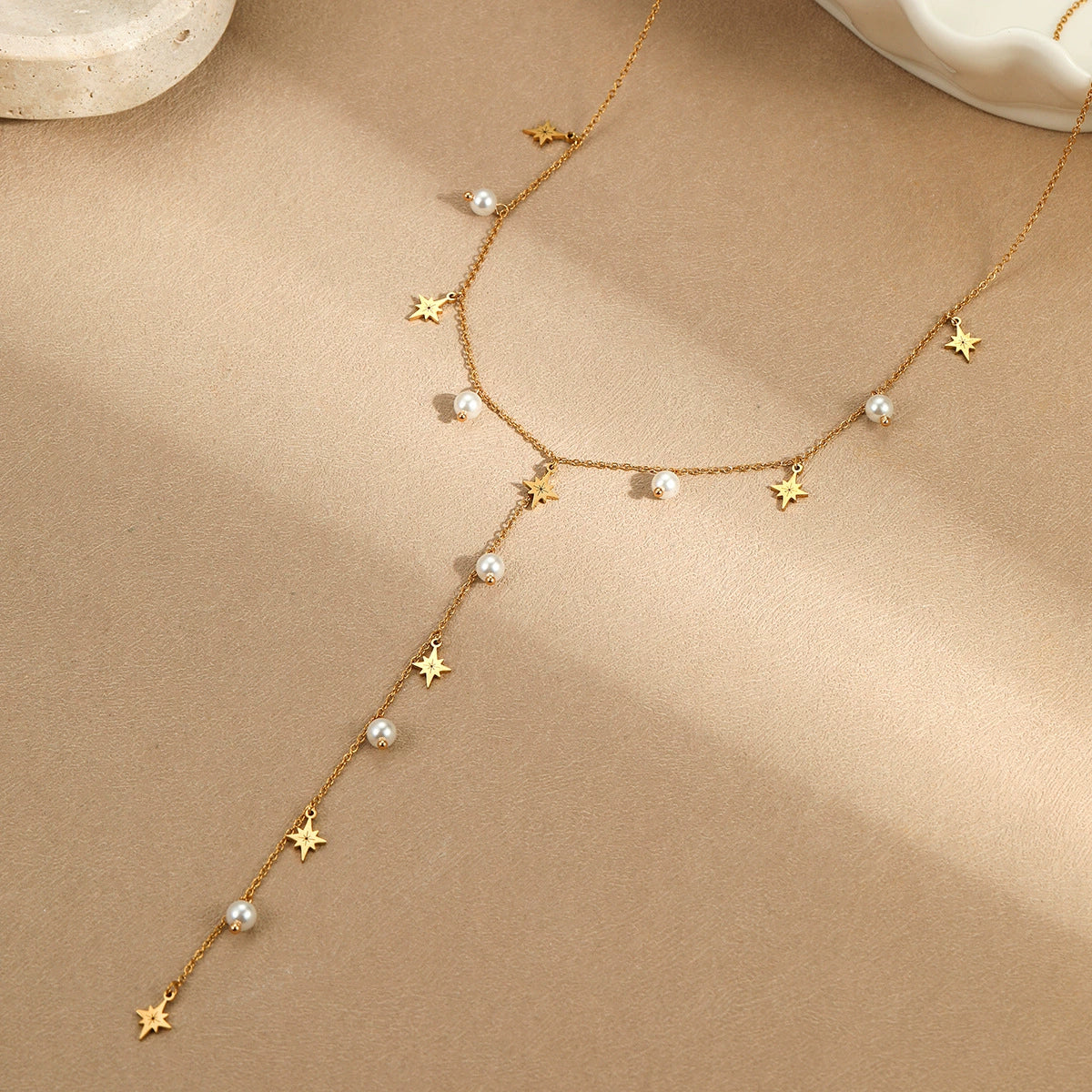Wholesale Tassel Imitation Pearl Ychain Necklace Stainless Steel 18K Electroplated Geometric Style Jewelry For Women