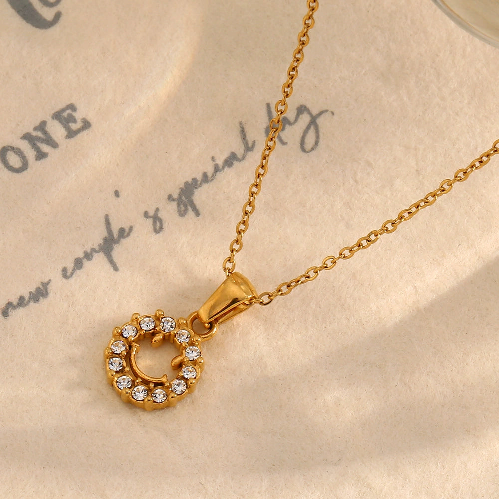 Wholesale Women's Fashion Simple Niche Personality Stainless Steel Electroplated 18K Gold Hollow Zircon Geometric Smiley Pendant Necklace