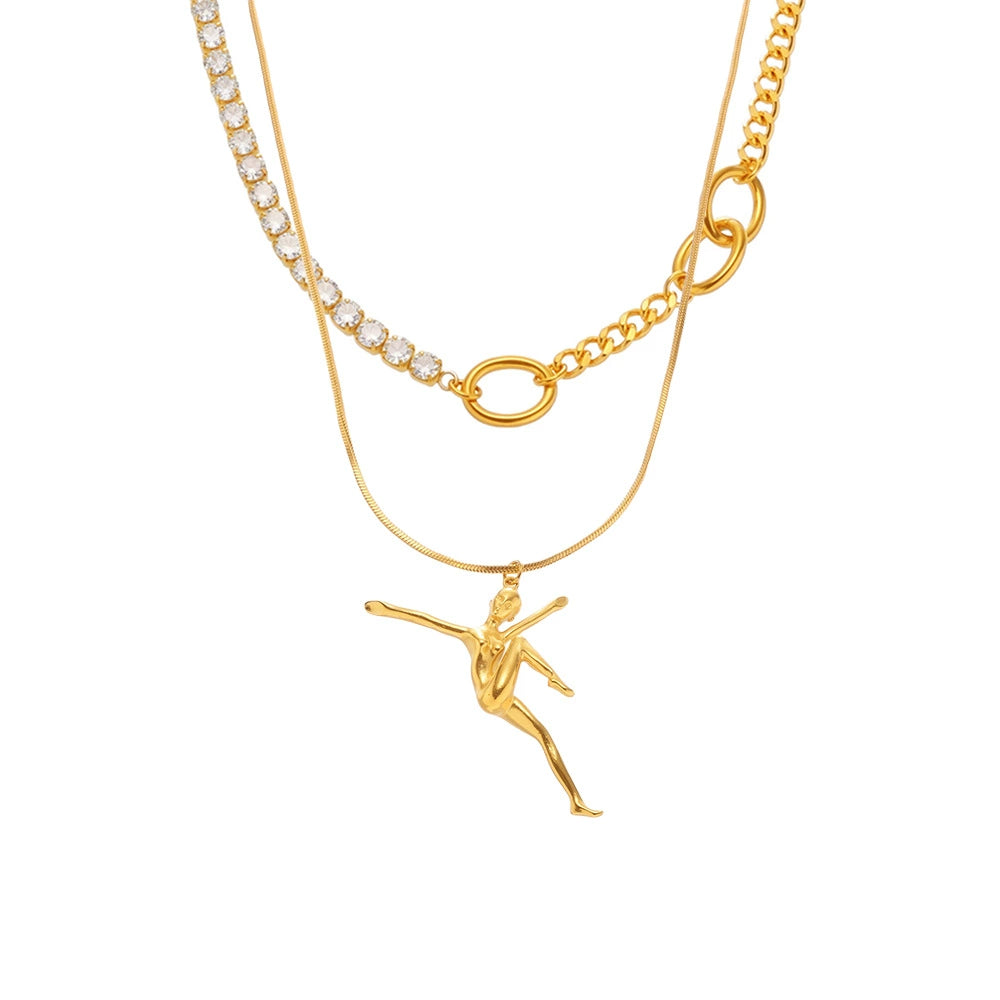 Wholesale Women's Geometric Ferris Wheel And Bear Doublelayer Stacked Stainless Steel And Titanium Steel Electroplated Necklace