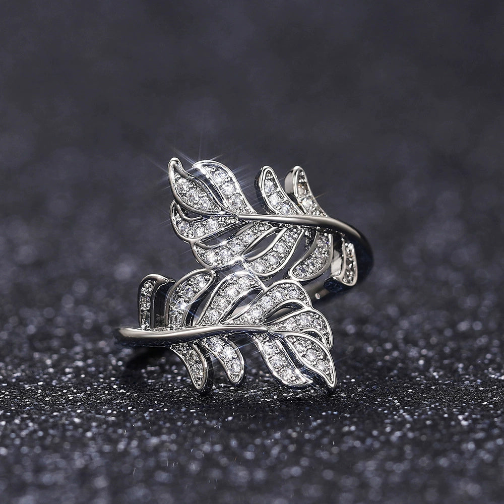 Wholesale Women's Plant Flower Leaf Style Copper Ring With Zircon
