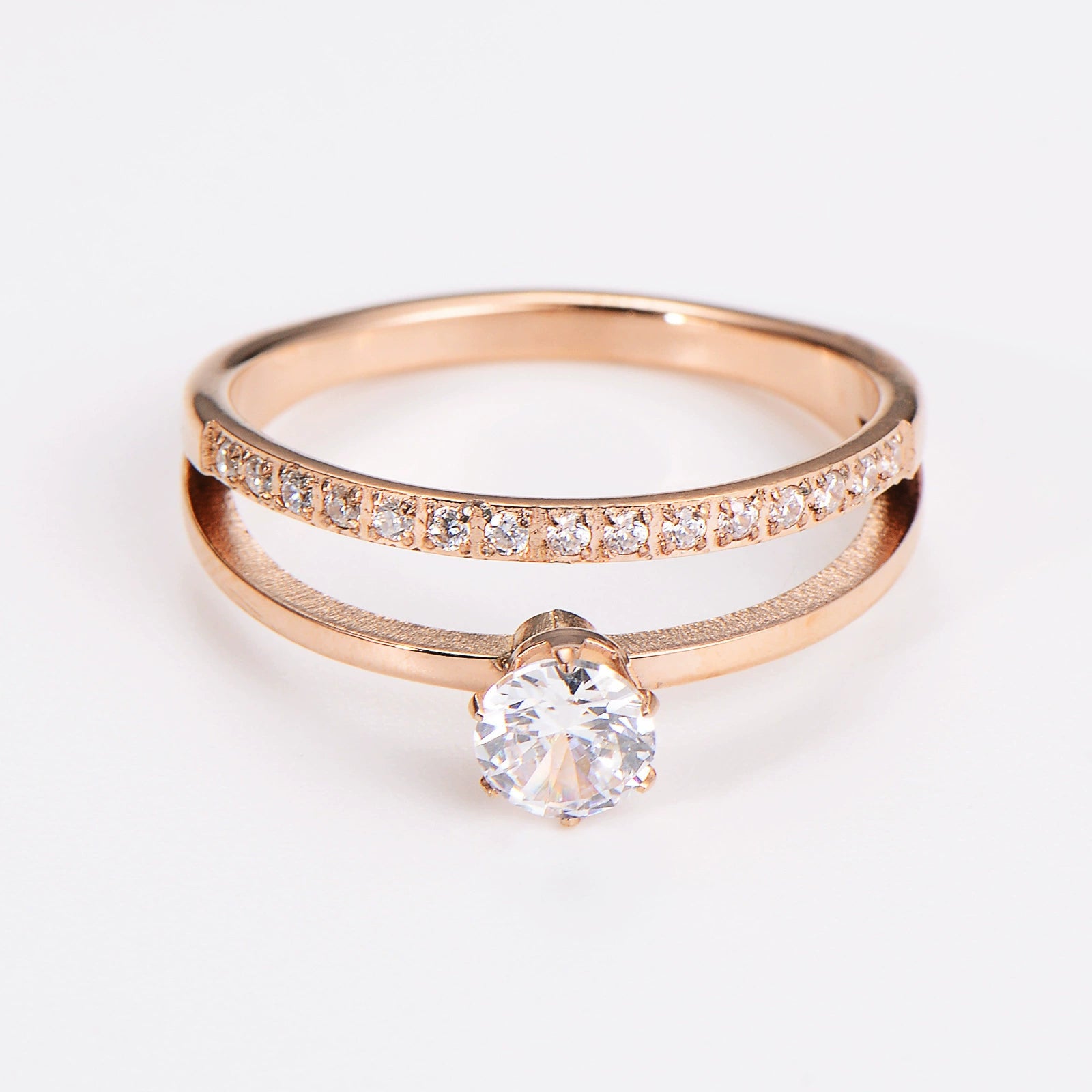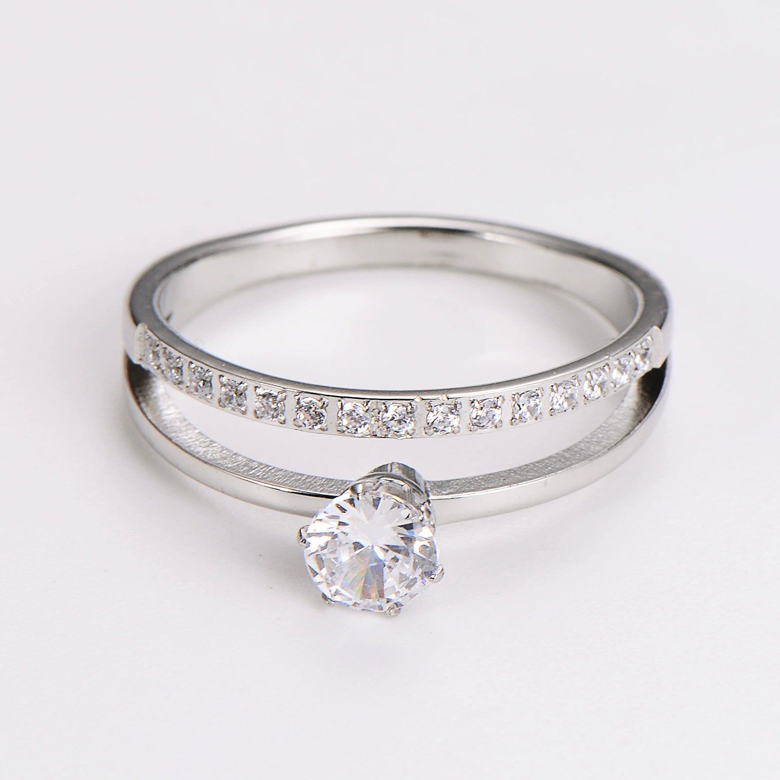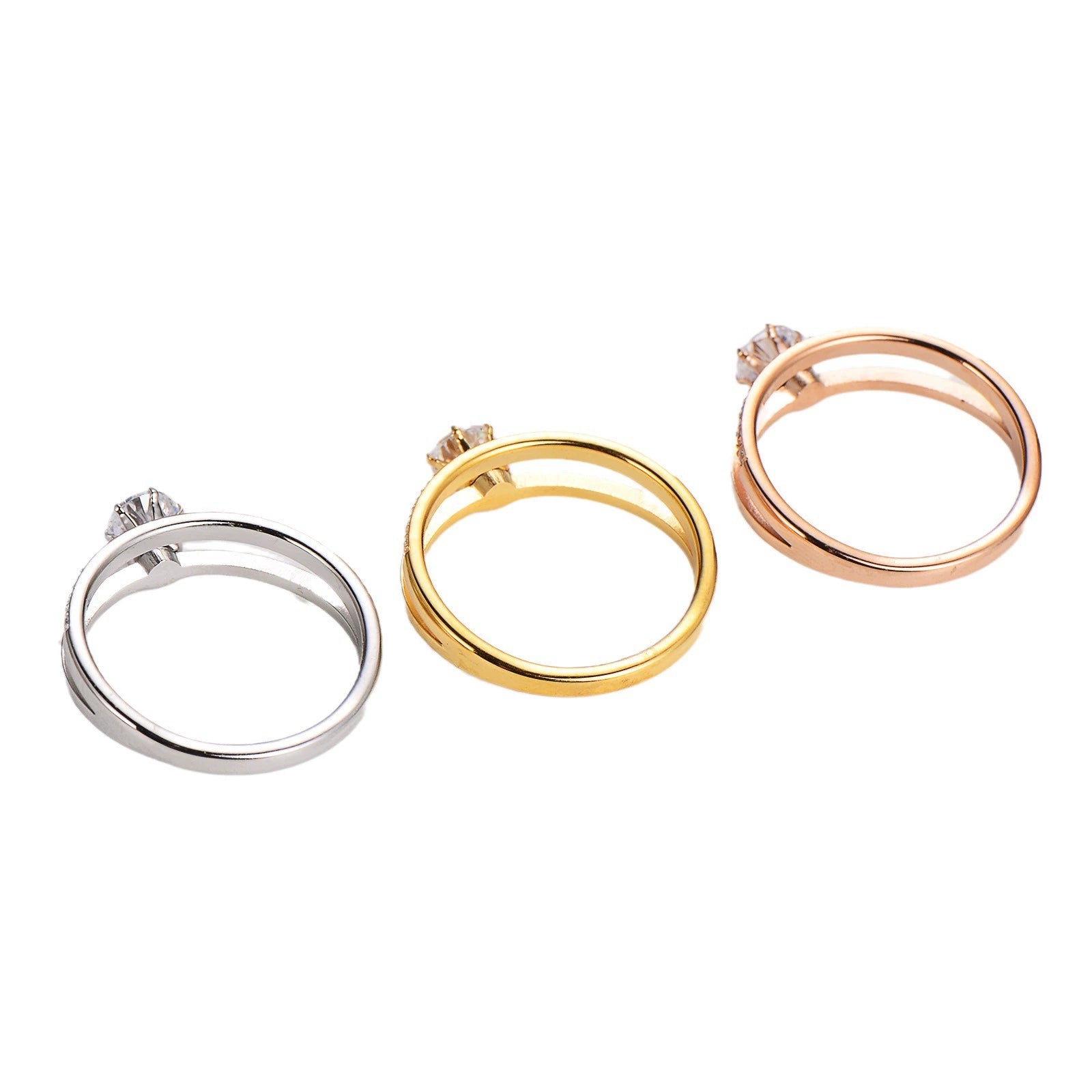 Wholesale Women's Simple Geometric Doublelayer Microinlaid Single Diamond Index Finger Stainless Steel Ring With Sixclaw Zircon Electroplated
