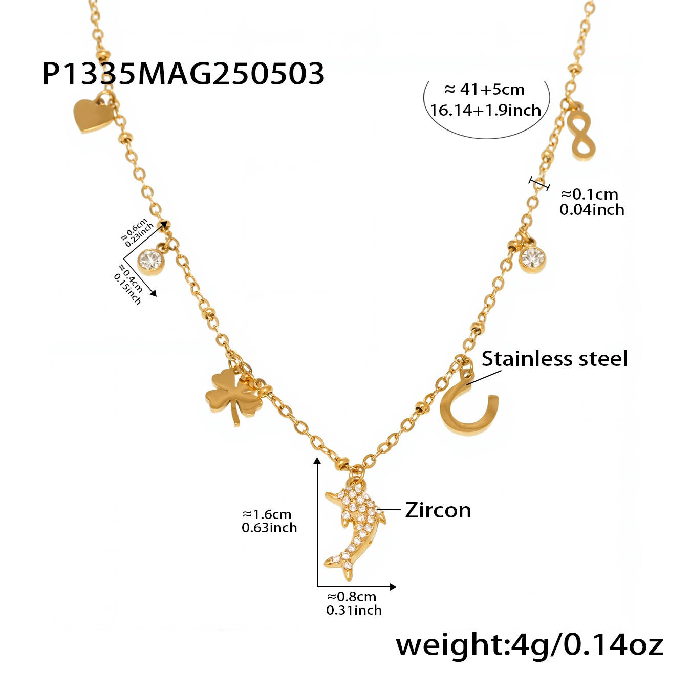Wholesale Women's Stainless Steel And Titanium Steel Geometric Dolphin Multiaccessories Clavicle Chain Electroplated Light Luxury Elegant Necklace Jewelry