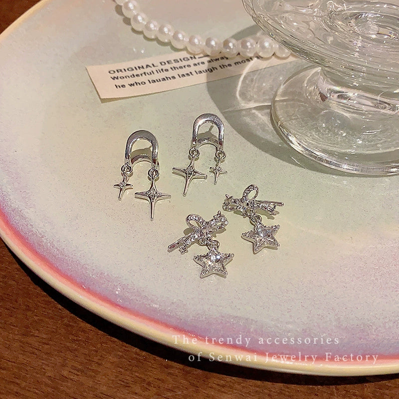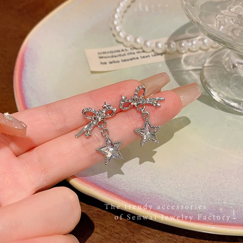 Women's Alloy And 925 Silver Bow And Star Earrings With Electroplating