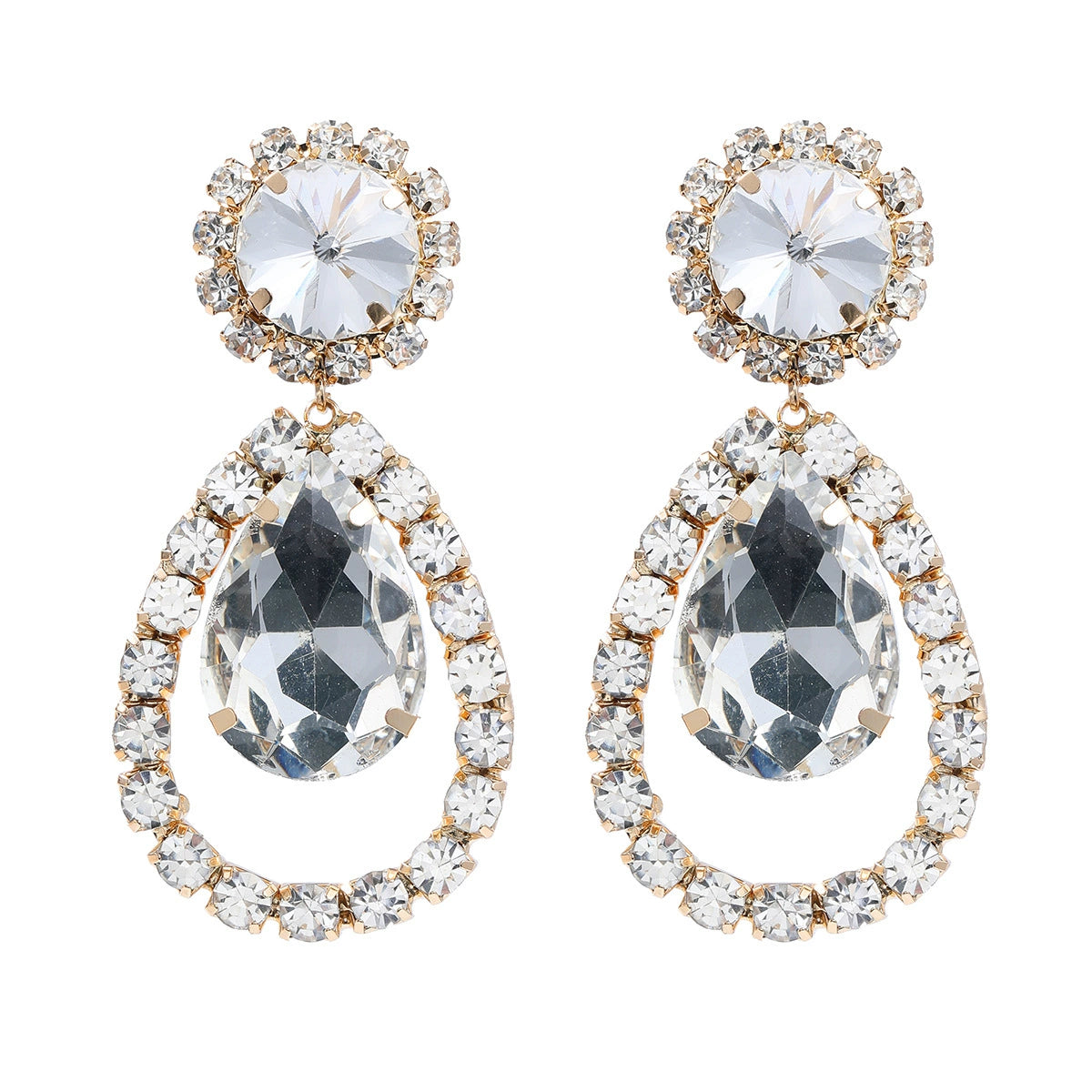 Women's Alloy Drop Shaped Geometric Style Diamond Earrings For Autumn And Winter