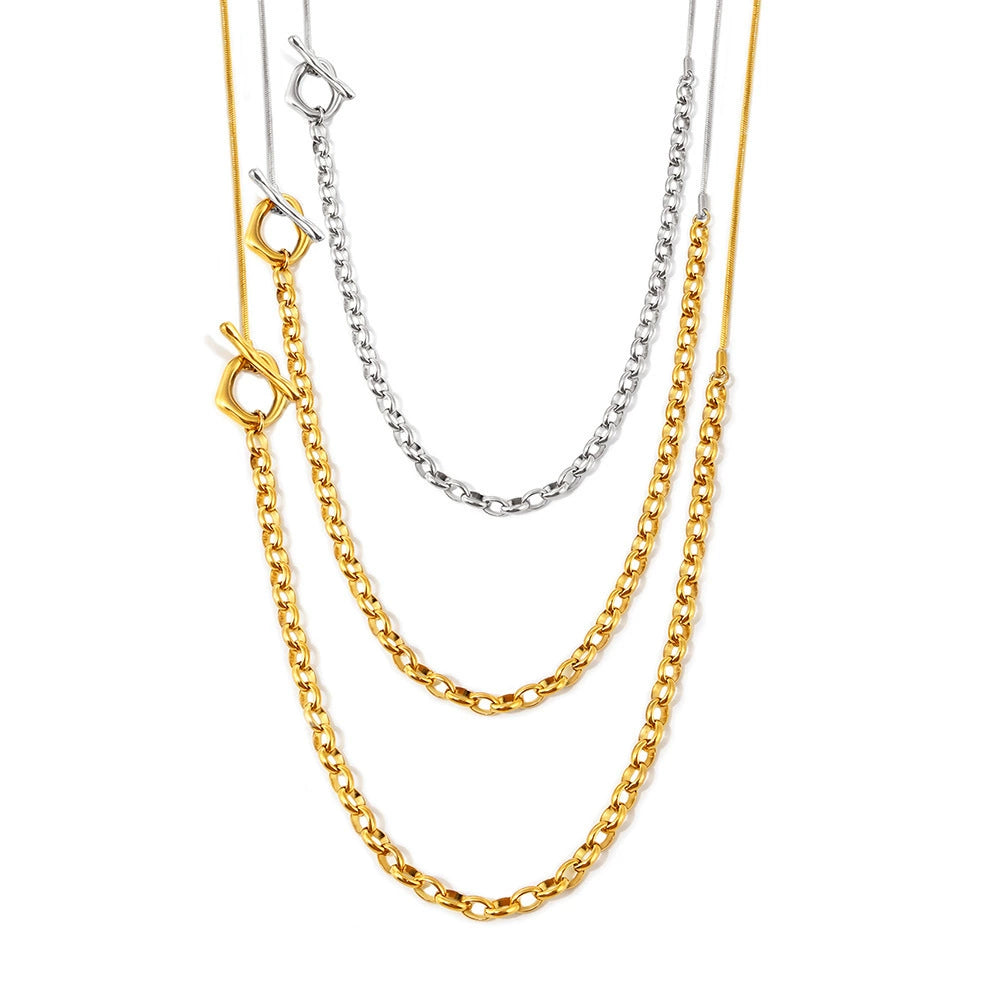 Women's Fashion Handmade 316L Stainless Steel Geometric Pattern Woolen Chain Necklace With Ot Buckle For Autumn And Winter