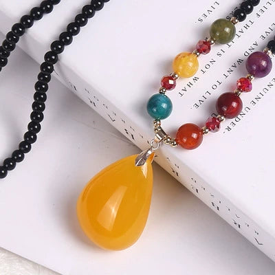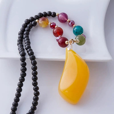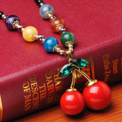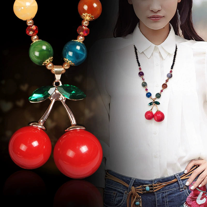 Women's Retro Colored Beads Cherry Necklace With Diamond Pendant And Crystal Plastic Resin Material Leaf Pattern For Autumn And Winter