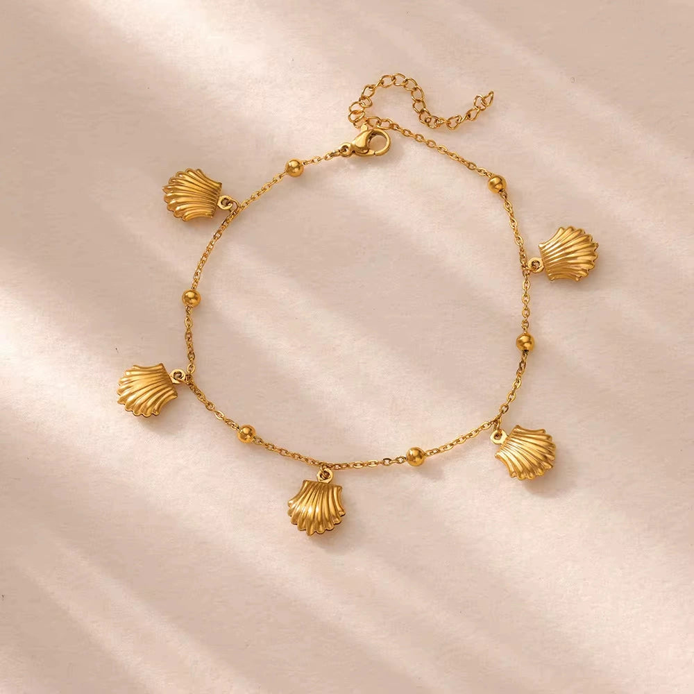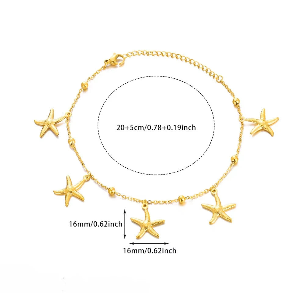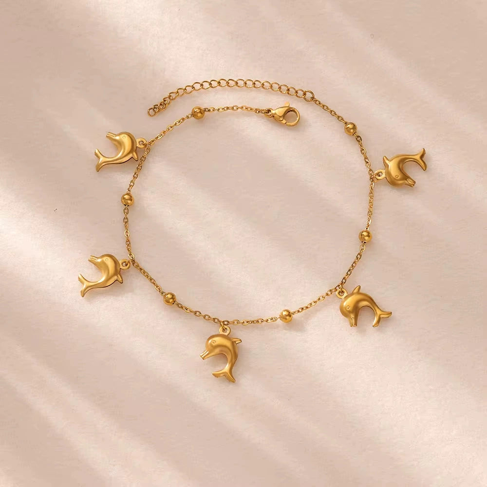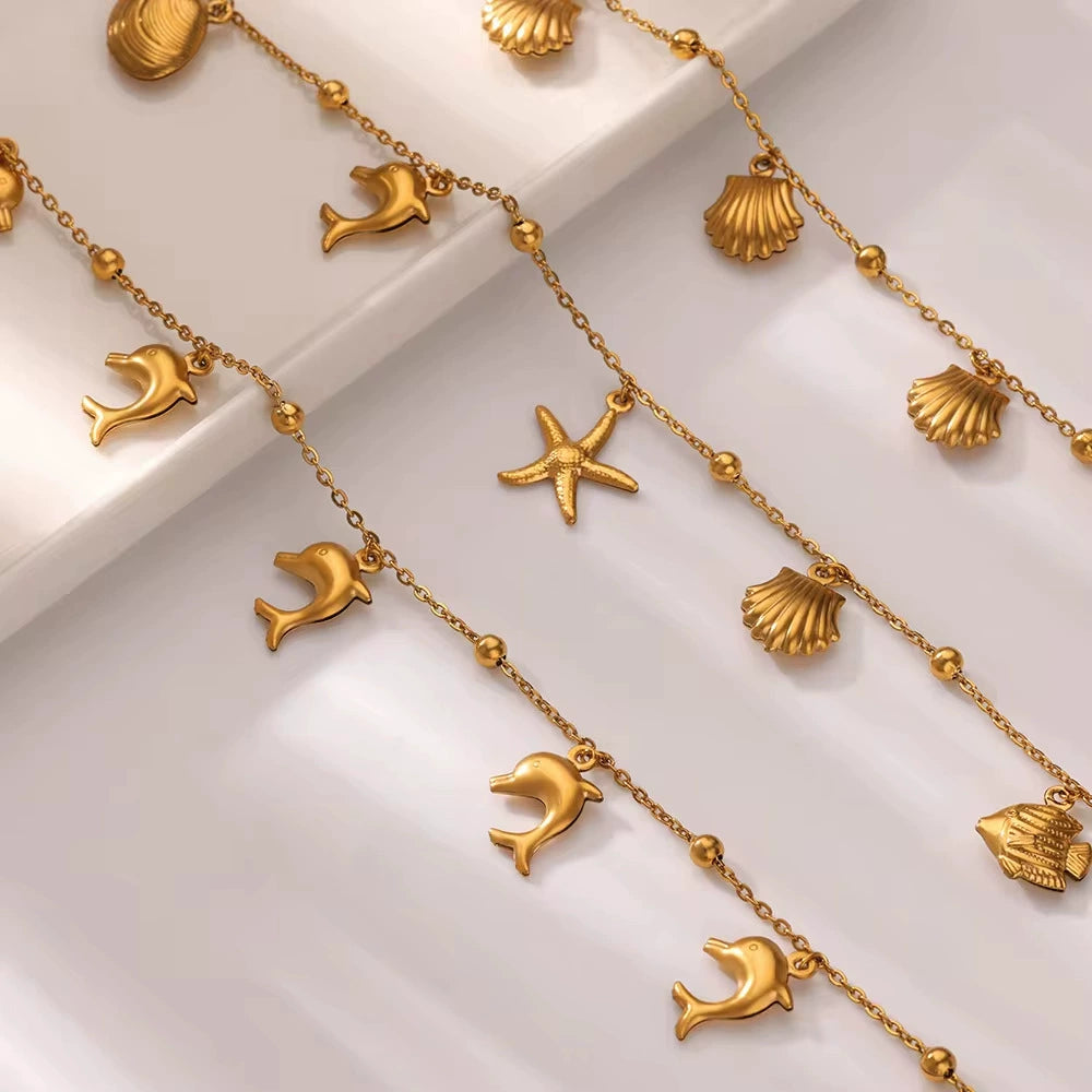 Women's Stainless Steel Ocean Series Anklet With Dolphin Starfish Shell Pendant
