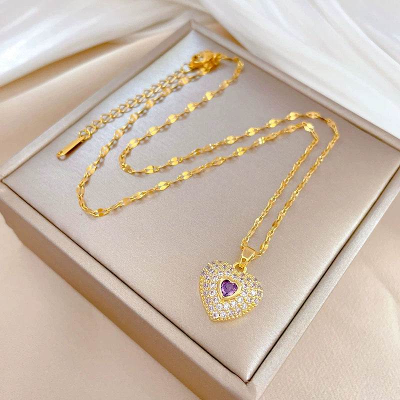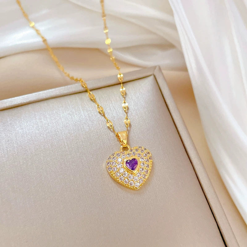 Women's Titanium Steel And Copper Love Heart Geometric Electroplated Necklace