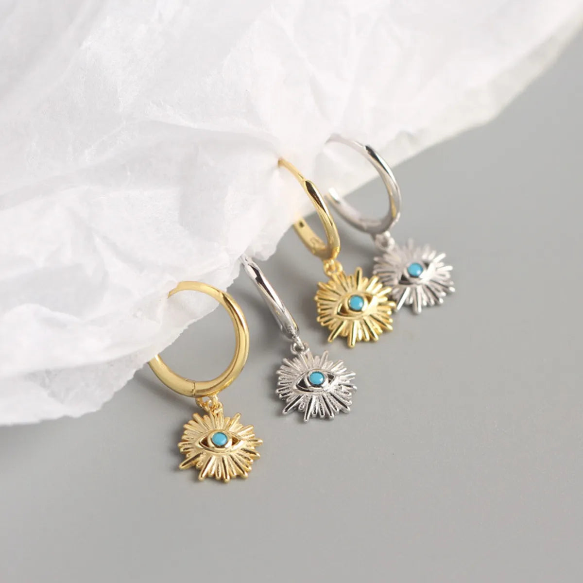 Yhe0208 S925 Sterling Silver Geometric Eyes Diamond Devil Eyes Earrings