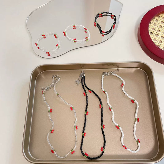 Wholesale titanium steel jewelry set with love water drops bells pattern for women polished necklace and bracelet
