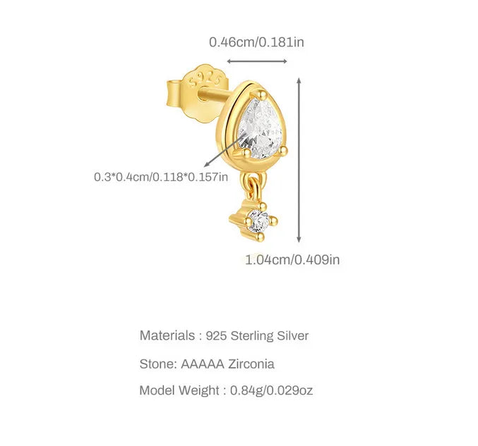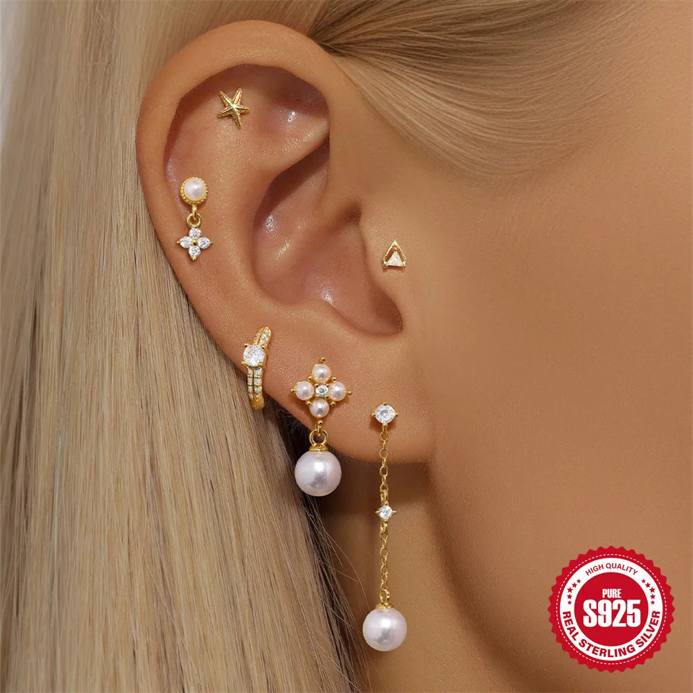 1 Pair 925 Sterling Silver Zircon 925 Sterling Silver Earrings Geometric Flower Drop Earrings