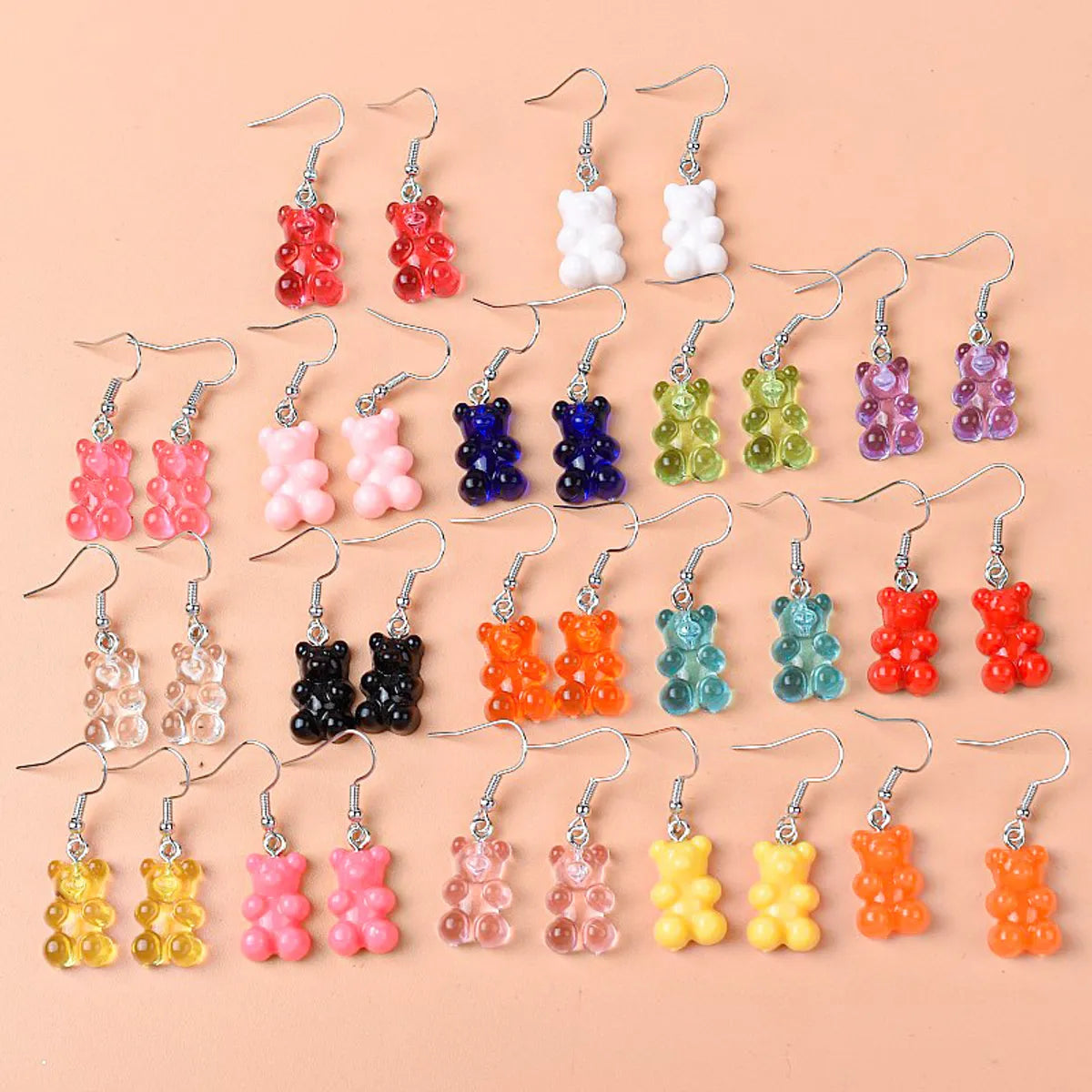 1 Pair Cute Lady Sweet Bear Resin Drop Earrings