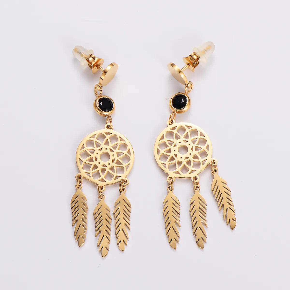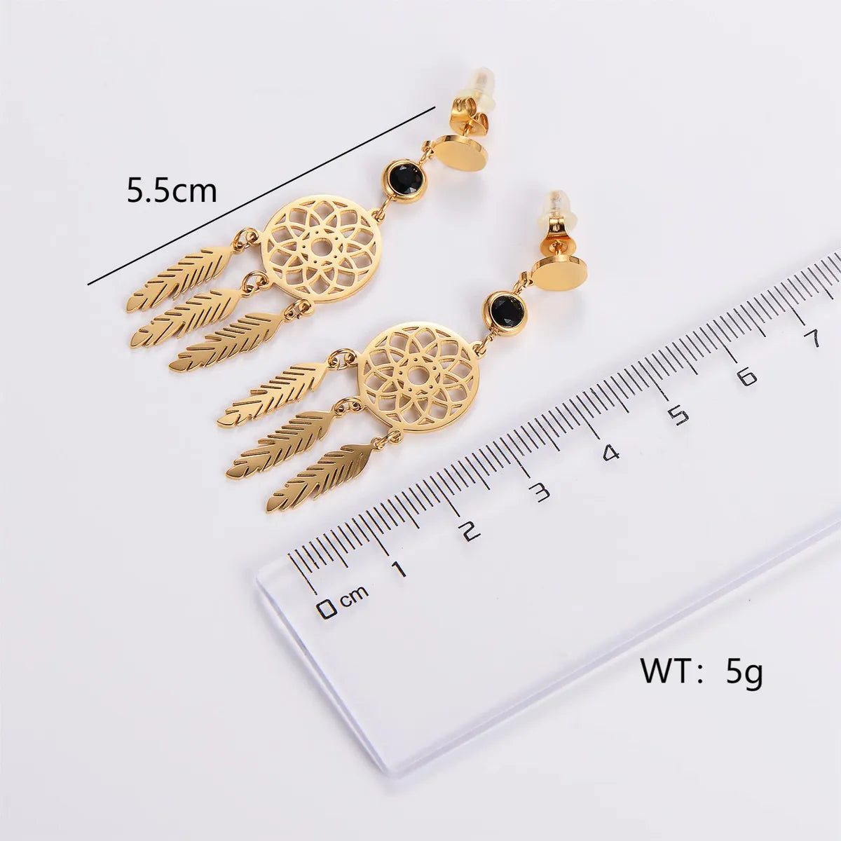 1 Pair Elegant Dreamcatcher Plating Stainless Steel Zircon 18k Gold Plated Drop Earrings