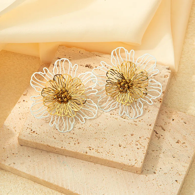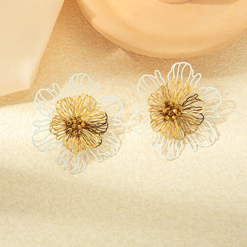 1 Pair Elegant Lady Sweet Flower Plating 304 Stainless Steel 14K Gold Plated Ear Studs