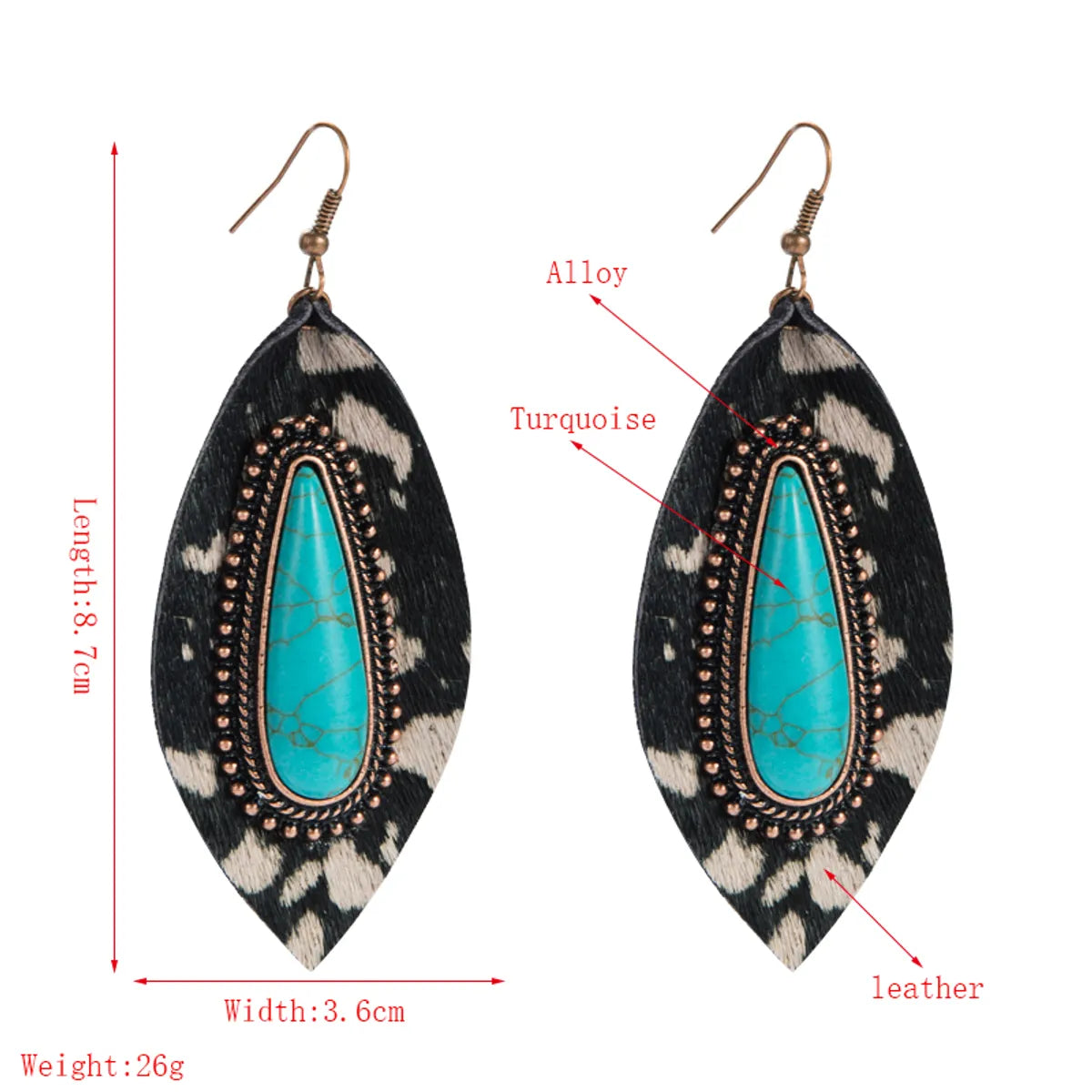 1 Pair Elegant Leopard Inlay Pu Leather Alloy Turquoise Turquoise Drop Earrings