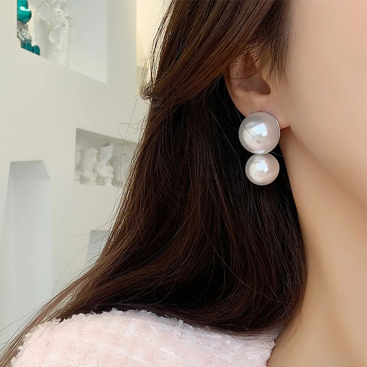 1 Pair Elegant Round Inlay Arylic Alloy Artificial Pearls White Gold Plated Drop Earrings
