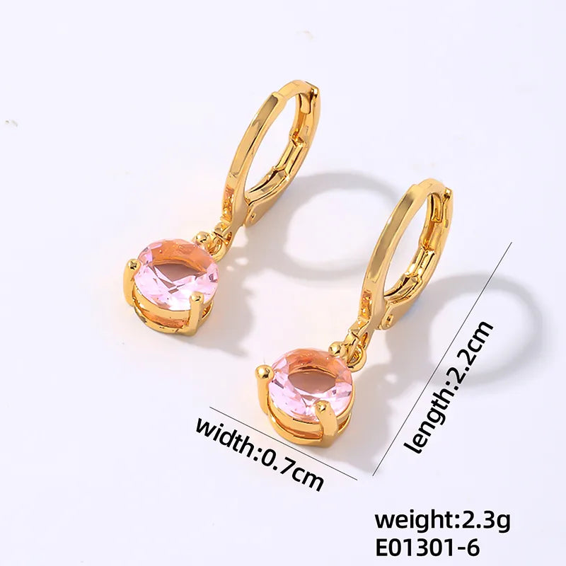 1 Pair Elegant Simple Style Shiny Geometric Round Water Droplets Plating Inlay Copper Zircon Drop Earrings