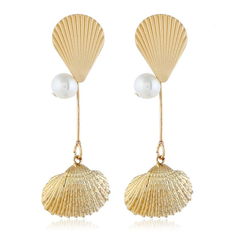 1 Pair Elegant Vacation Simple Style Shell Alloy Gold Plated Drop Earrings