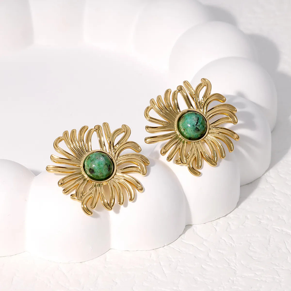 1 Pair Elegant Vintage Style French Style Flower Inlay 304 Stainless Steel Turquoise 18K Gold Plated Ear Studs