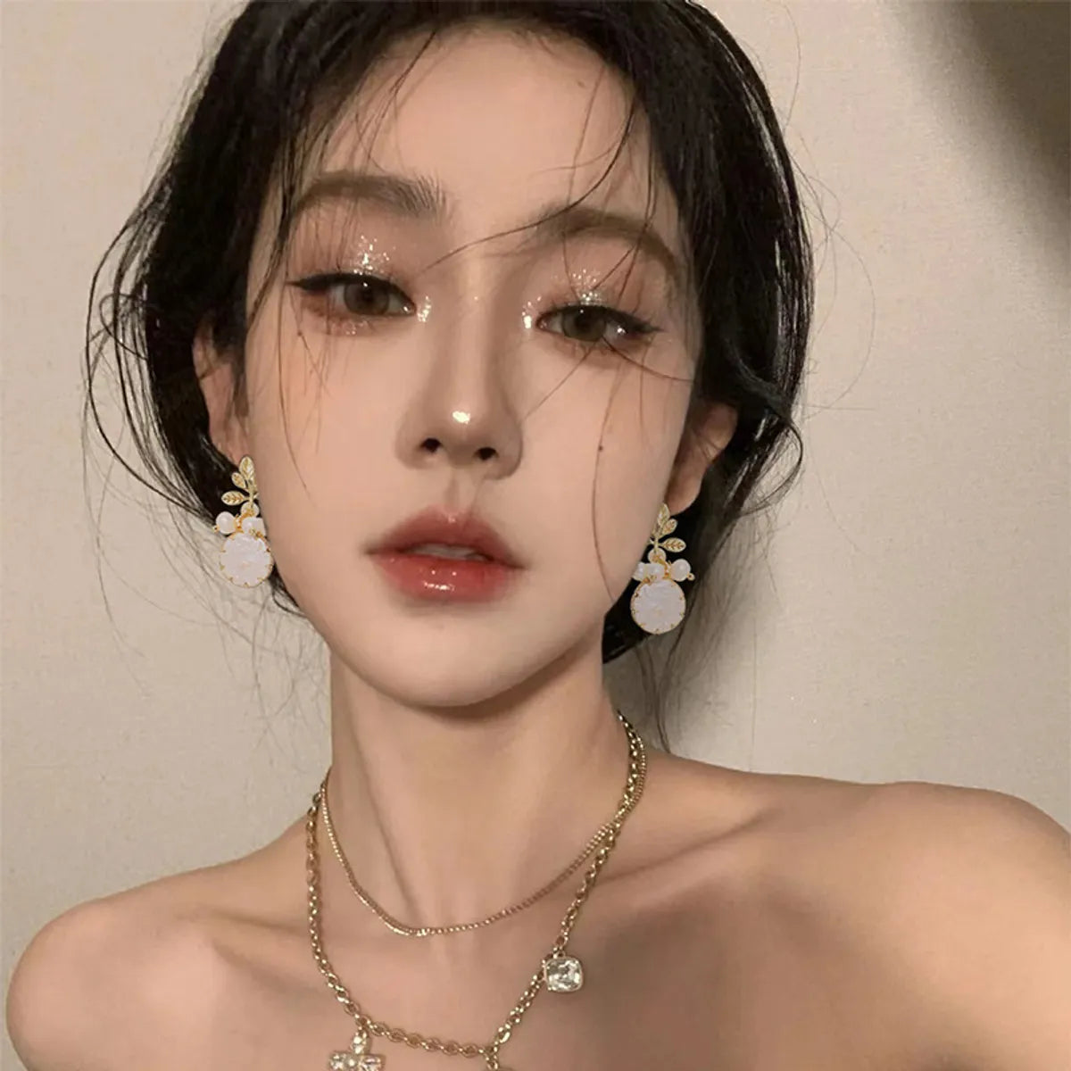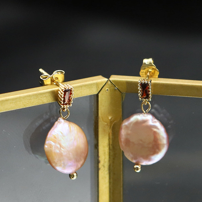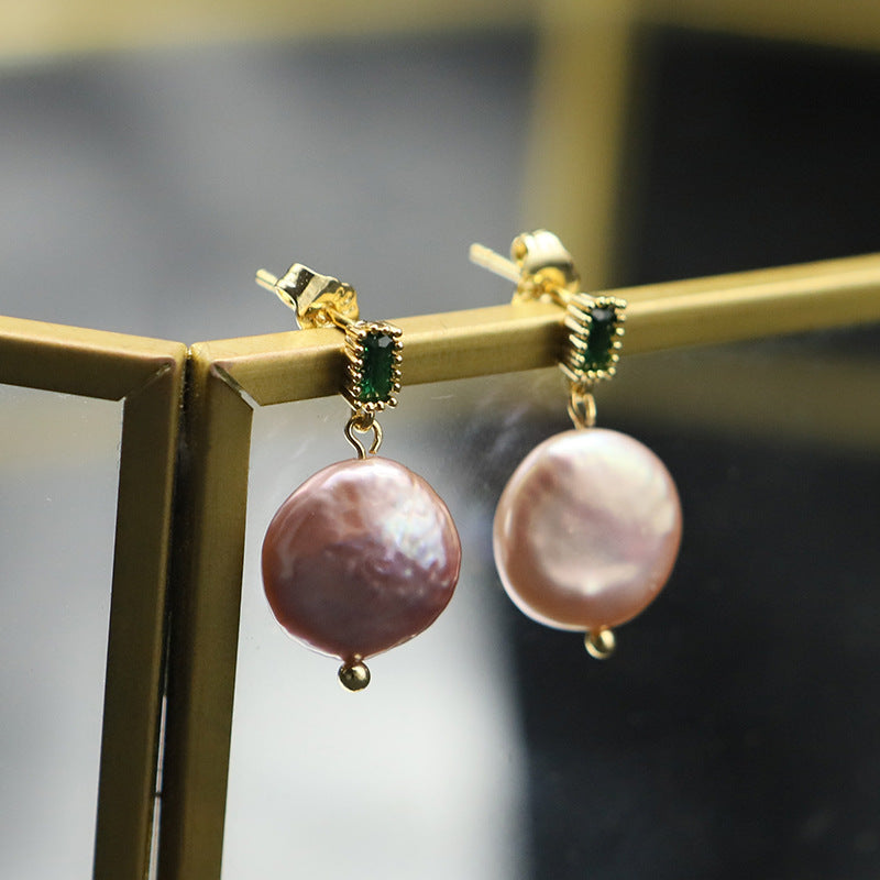 1 Pair Ethnic Style Leaf Square Oval Natural Stone Pearl Sterling Silver Earrings