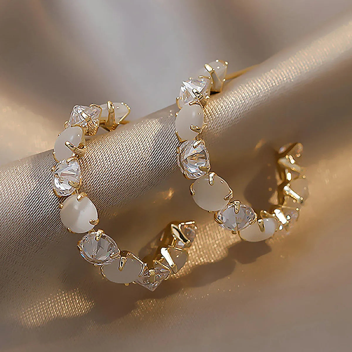 1 Pair Fashion C Shape Inlay Alloy Artificial Gemstones Ear Studs