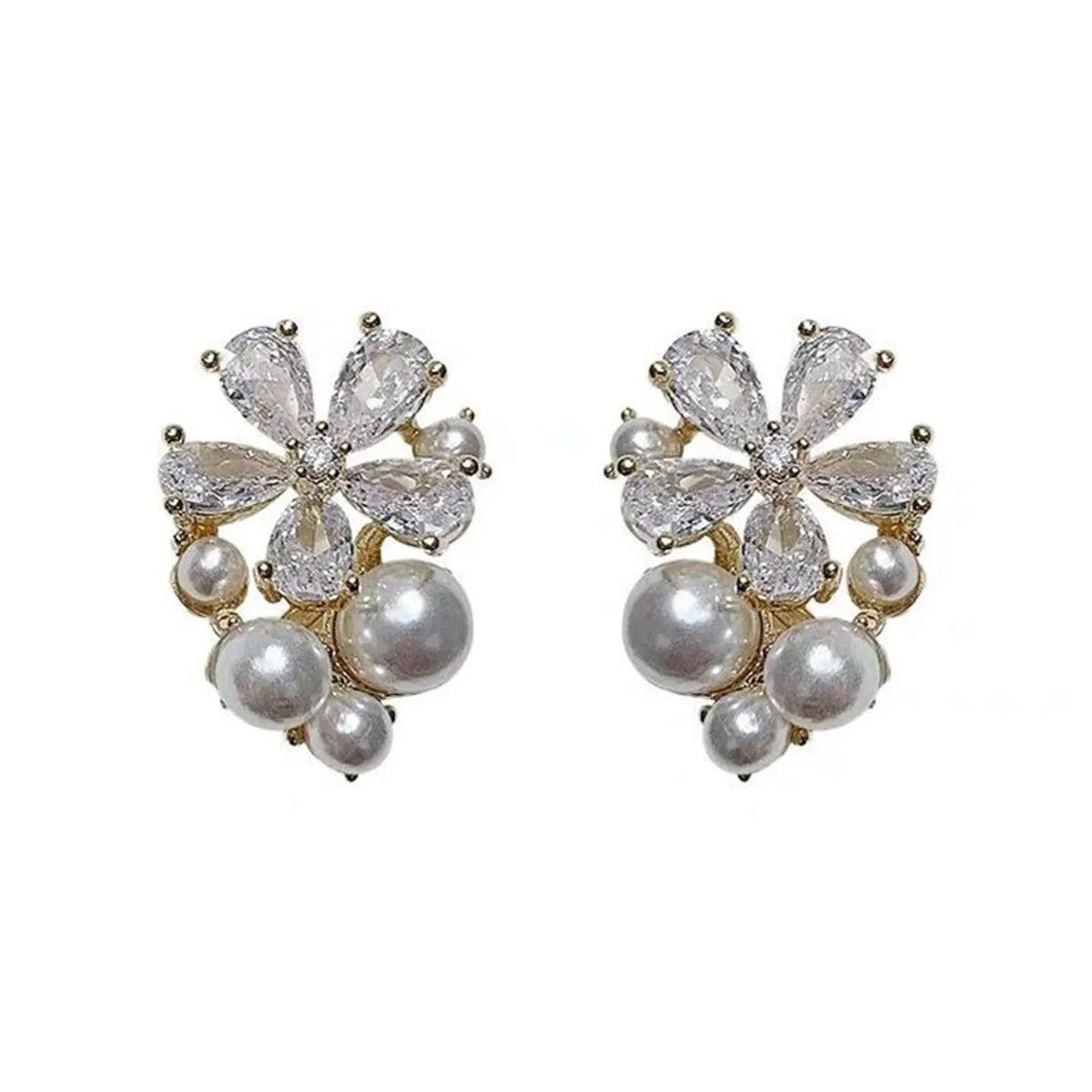 1 Pair Fashion Heart Shape Flower Bow Knot Copper Inlay Artificial Pearls Zircon Earrings