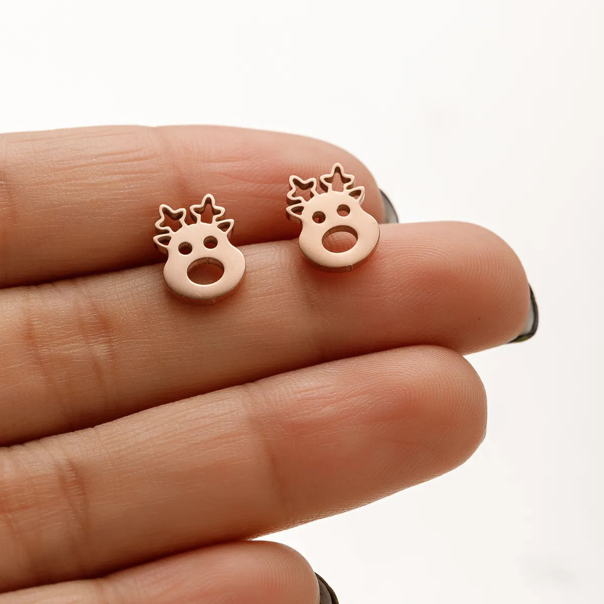 1 Pair IG Style French Style Korean Style Leaves Deer Polishing Plating 304 Stainless Steel 18K Gold Plated Ear Studs