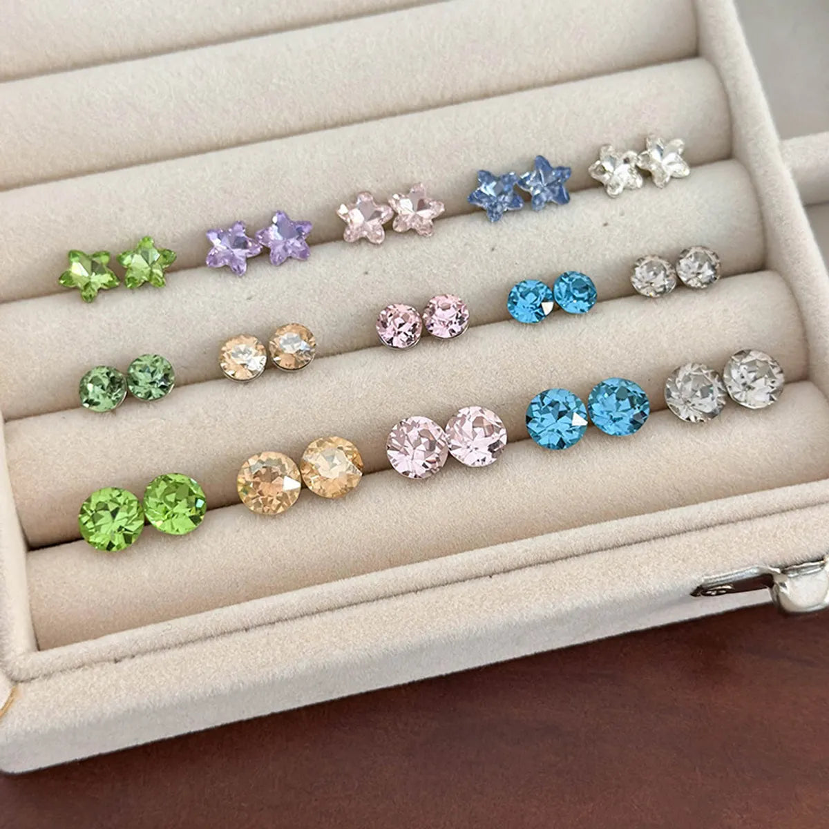 1 Pair IG Style Simple Style Round Star Inlay Crystal Zirconium Zircon Ear Studs