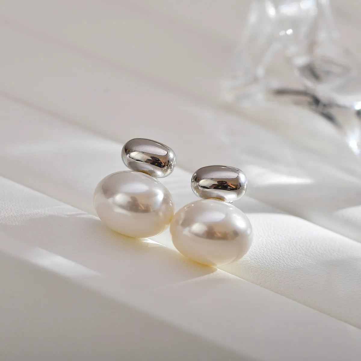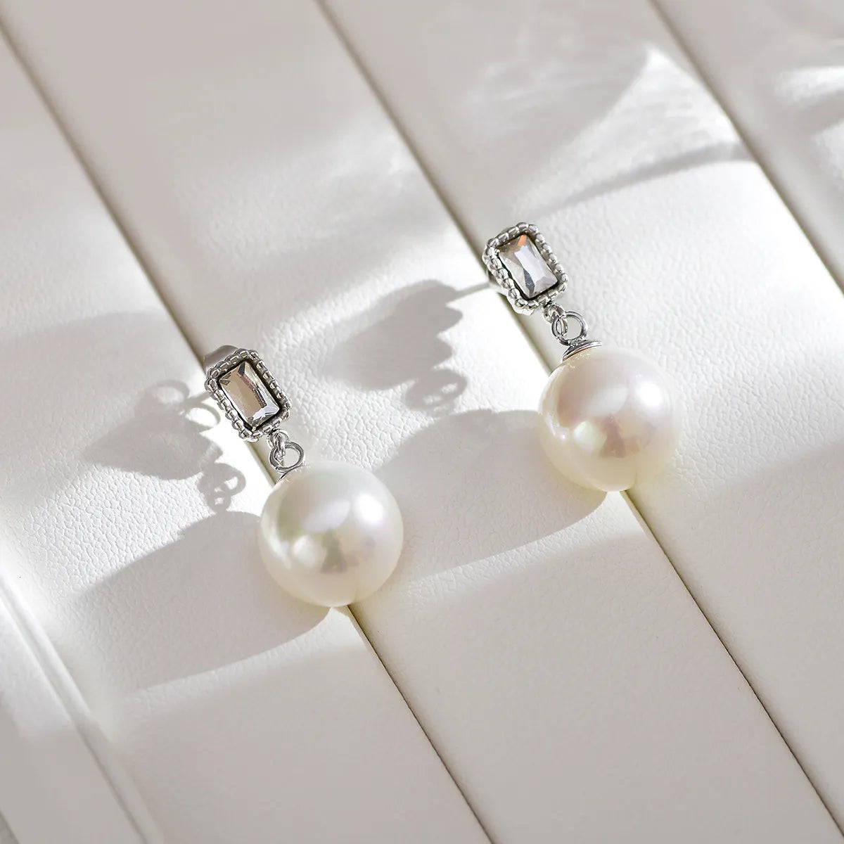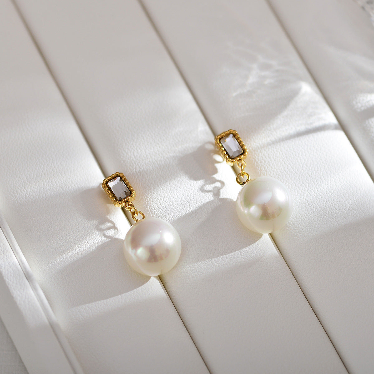 1 Pair Lady Geometric Inlay Stainless Steel Pearl Zircon Gold Plated Ear Studs