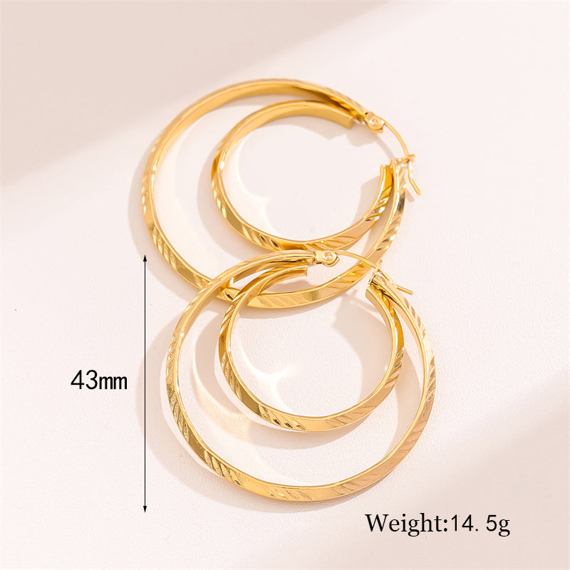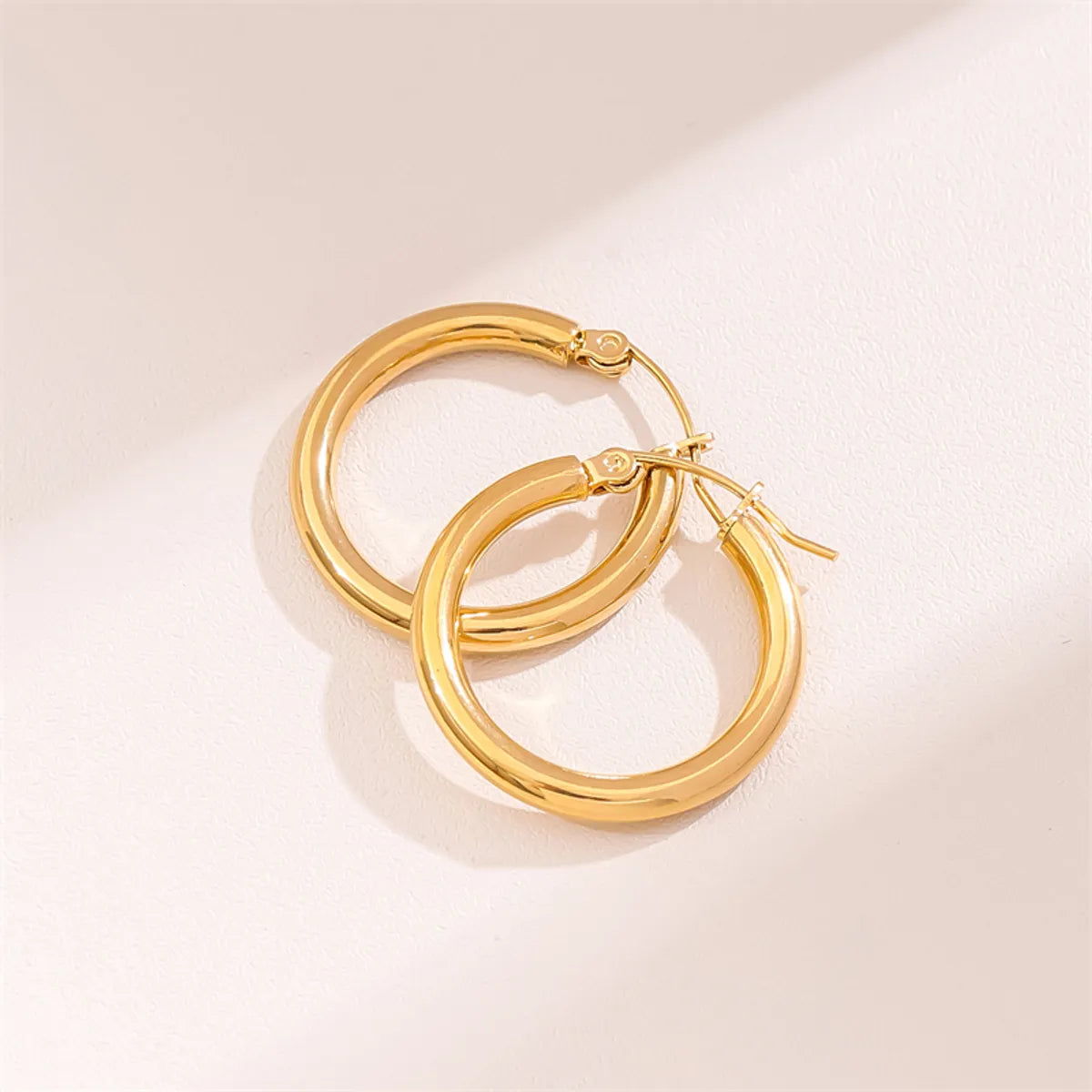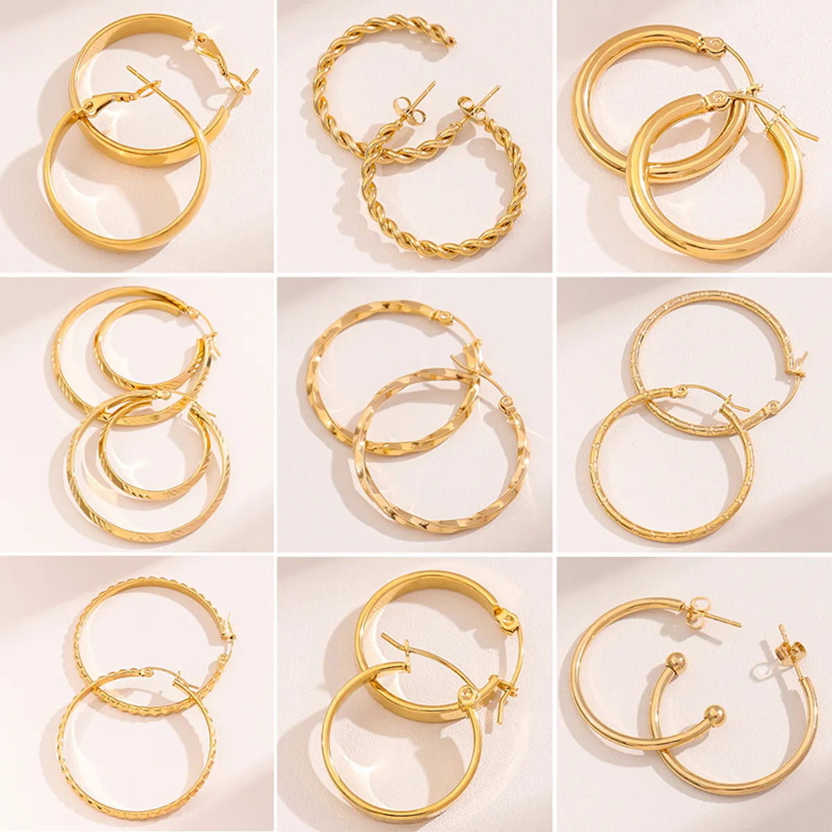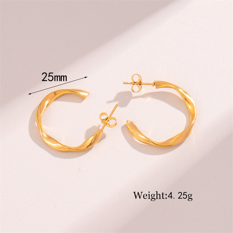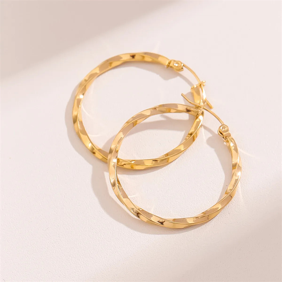 1 Pair Retro Simple Style Round Waves Plating Stainless Steel 18k Gold Plated Hoop Earrings