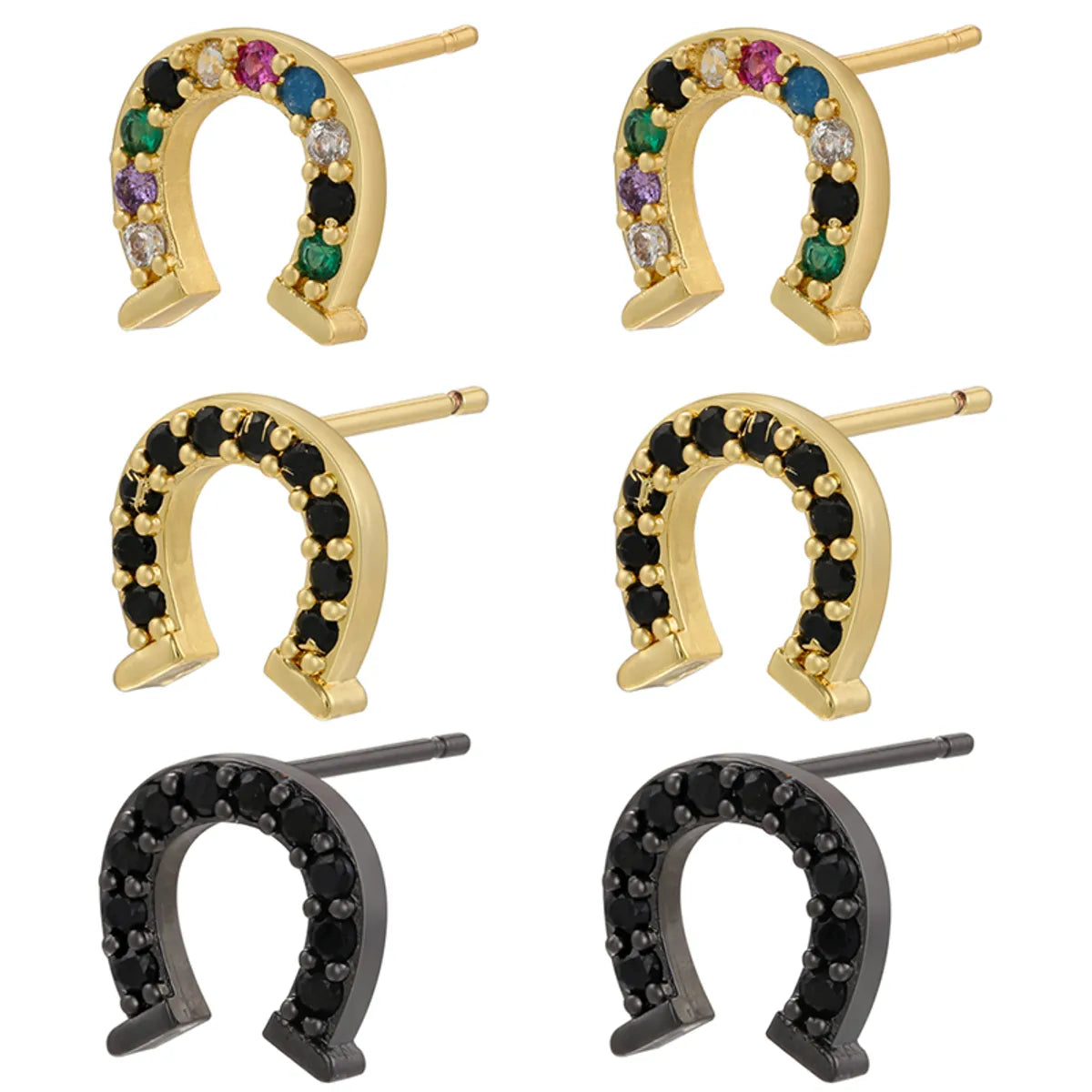 1 Pair Shiny Horseshoe Plating Inlay Copper Zircon 18k Gold Plated Ear Studs