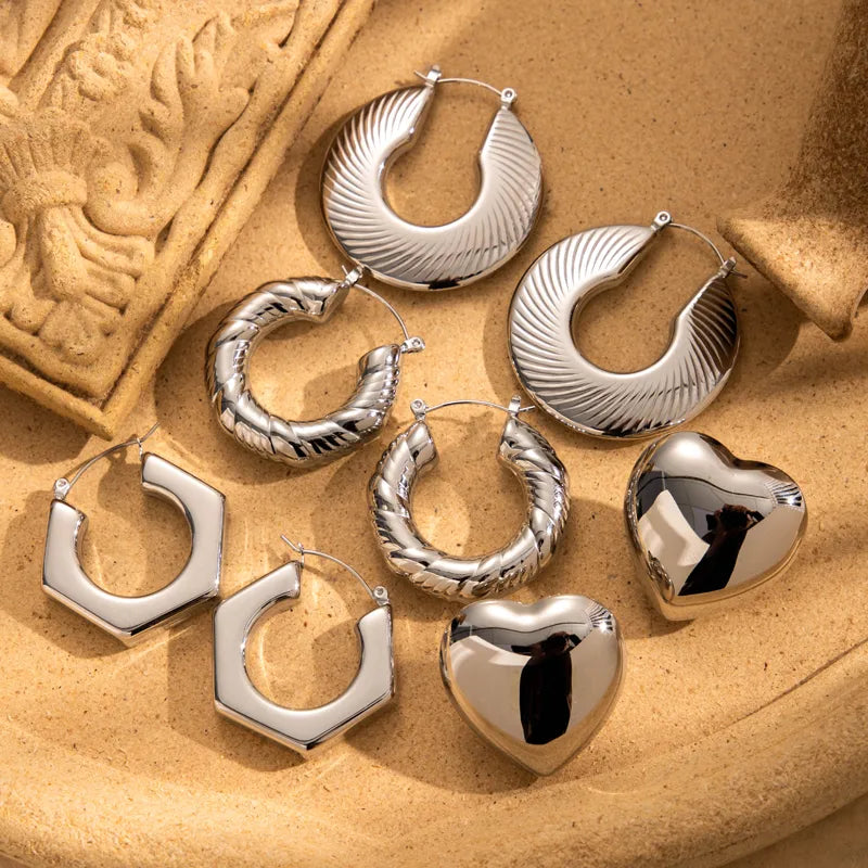 1 Pair Simple Style Round Heart Shape Plating 304 Stainless Steel Earrings