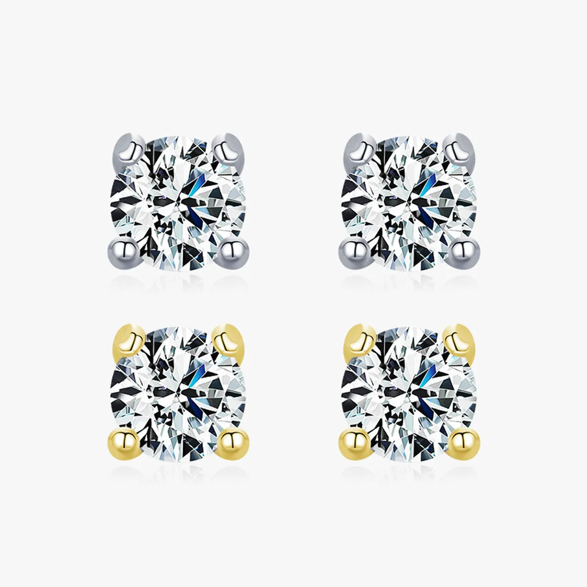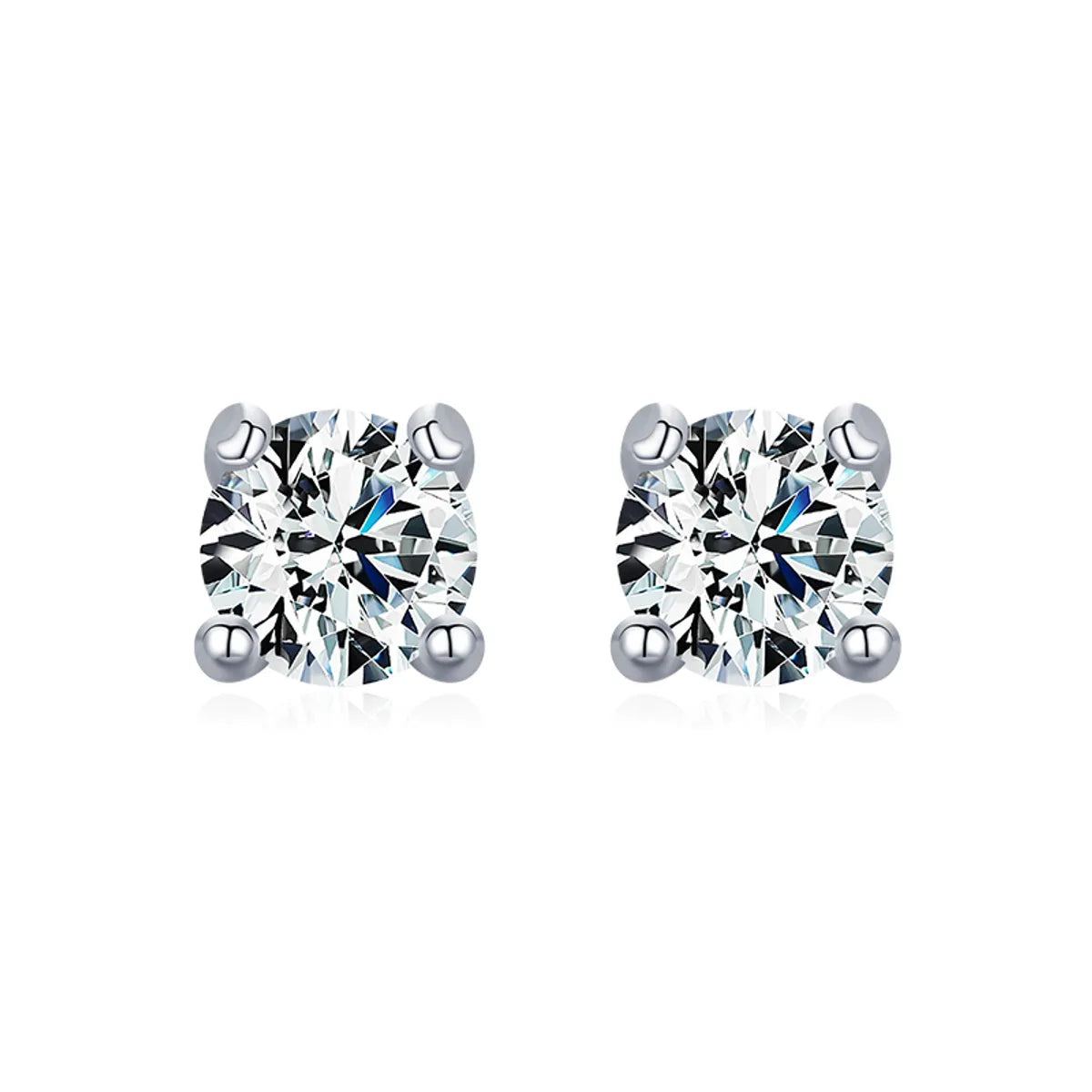 1 Pair Simple Style Round Sterling Silver Plating Inlay Moissanite 14k Gold Plated Rhodium Plated Ear Studs