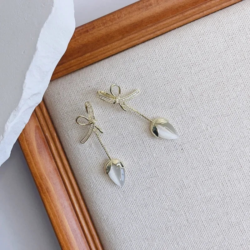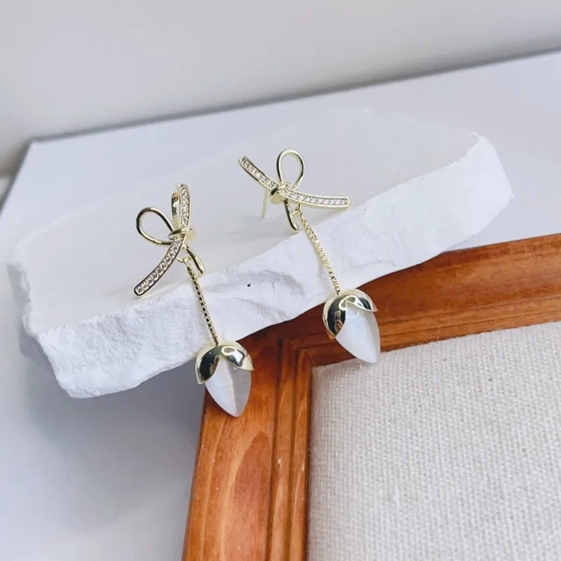 1 Pair Simple Style Streetwear Heart Shape Plating Inlay Copper Opal 18K Gold Plated Chandelier Earrings