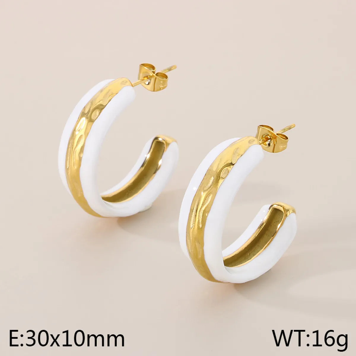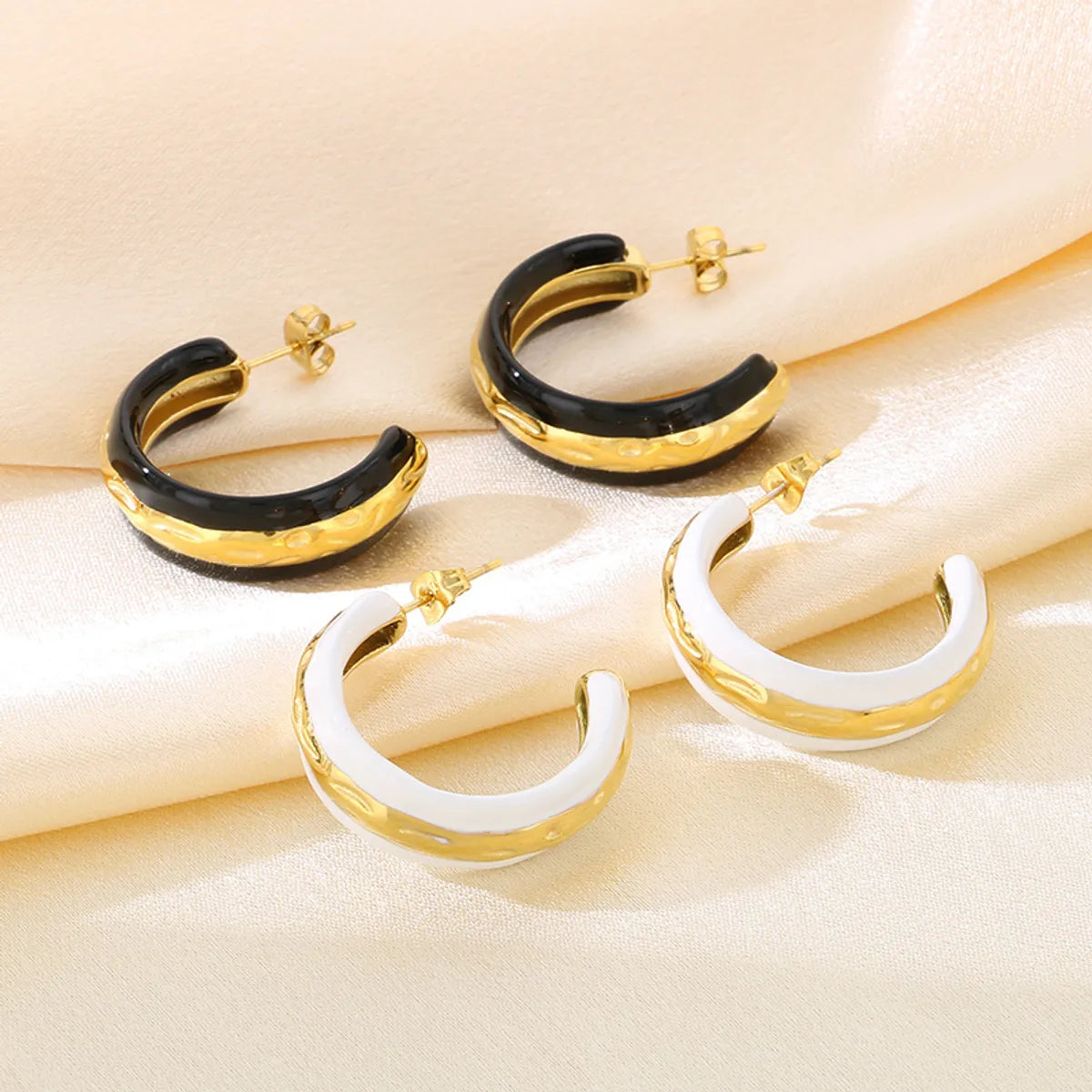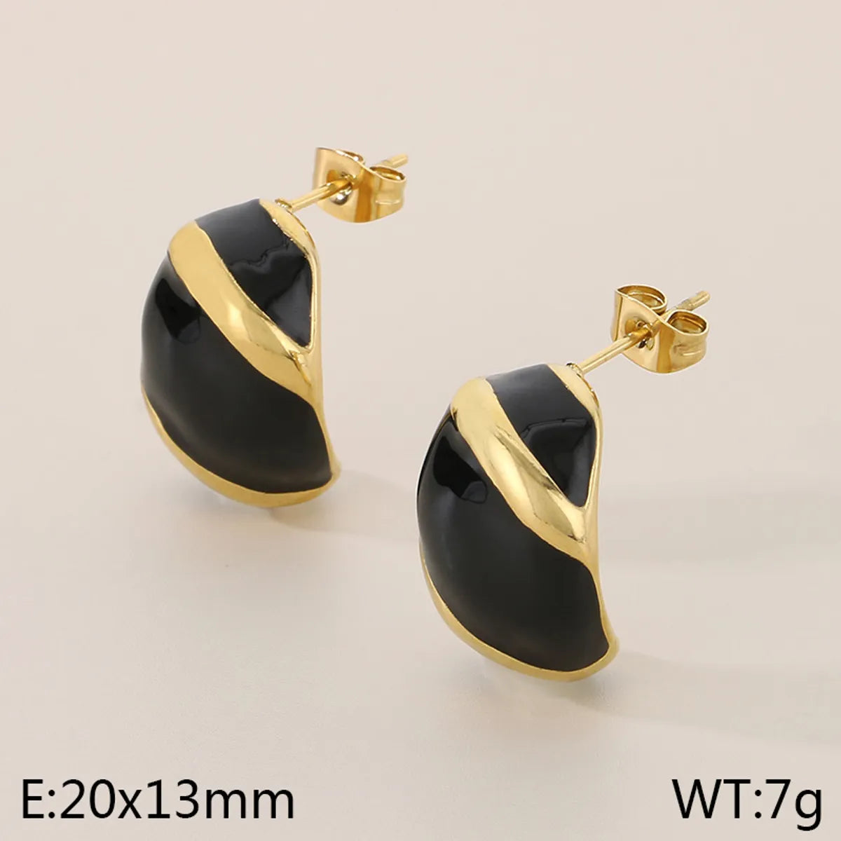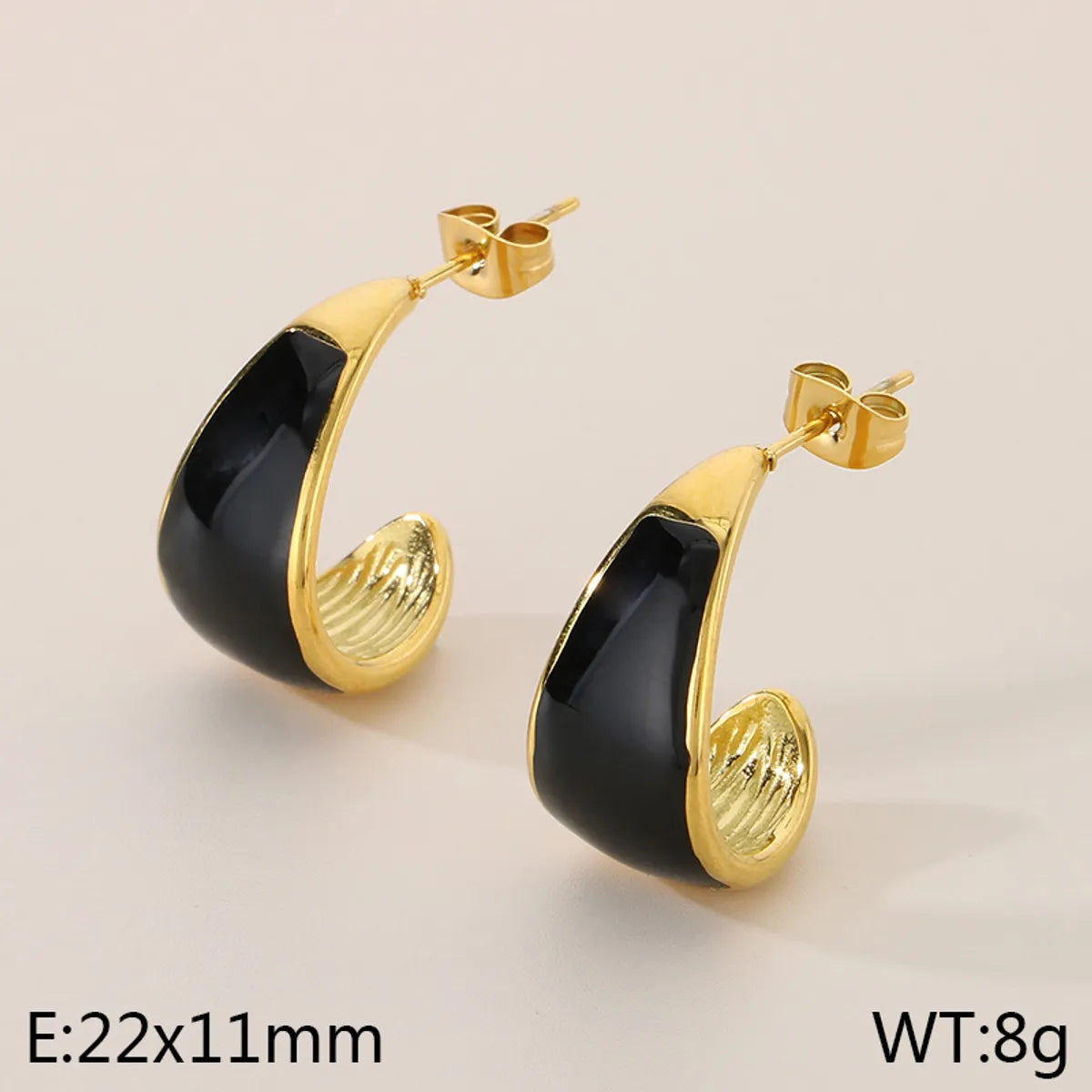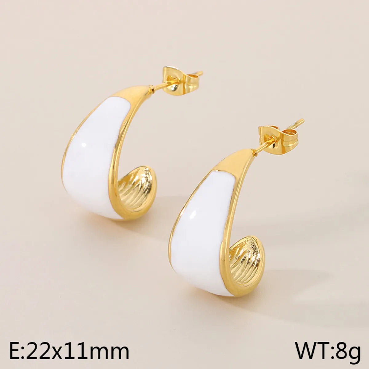 1 Pair Vintage Style C Shape Enamel 304 Stainless Steel 18K Gold Plated Ear Studs