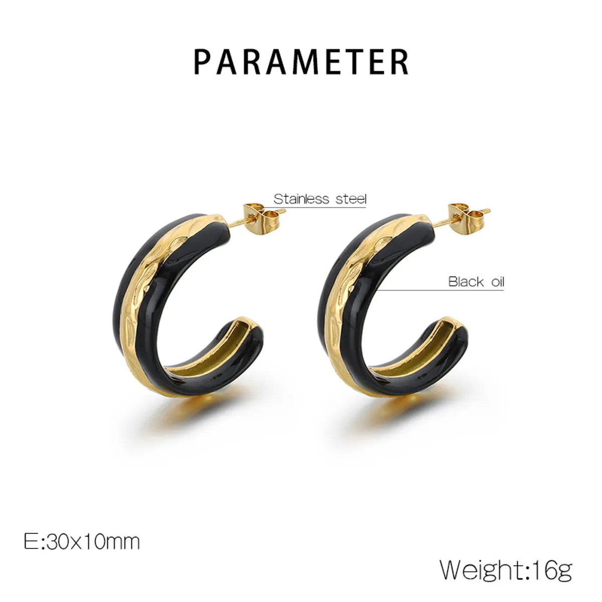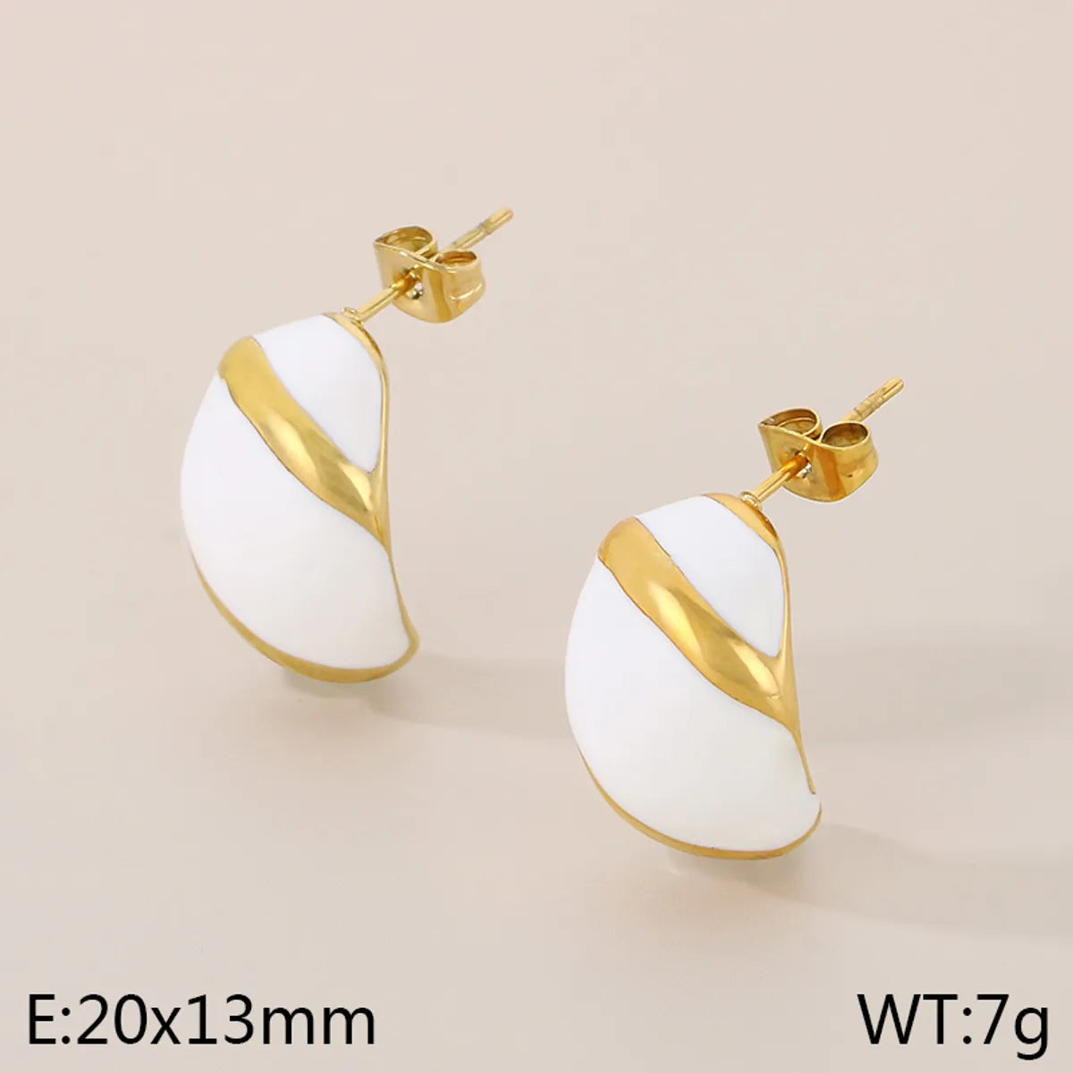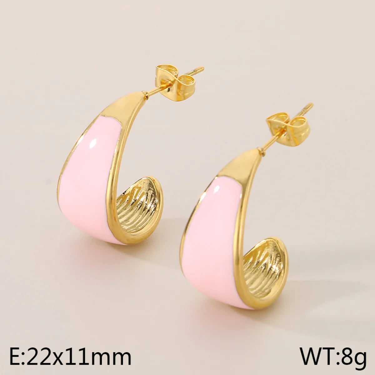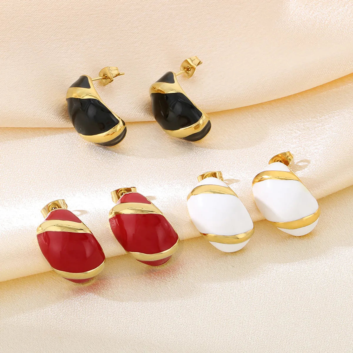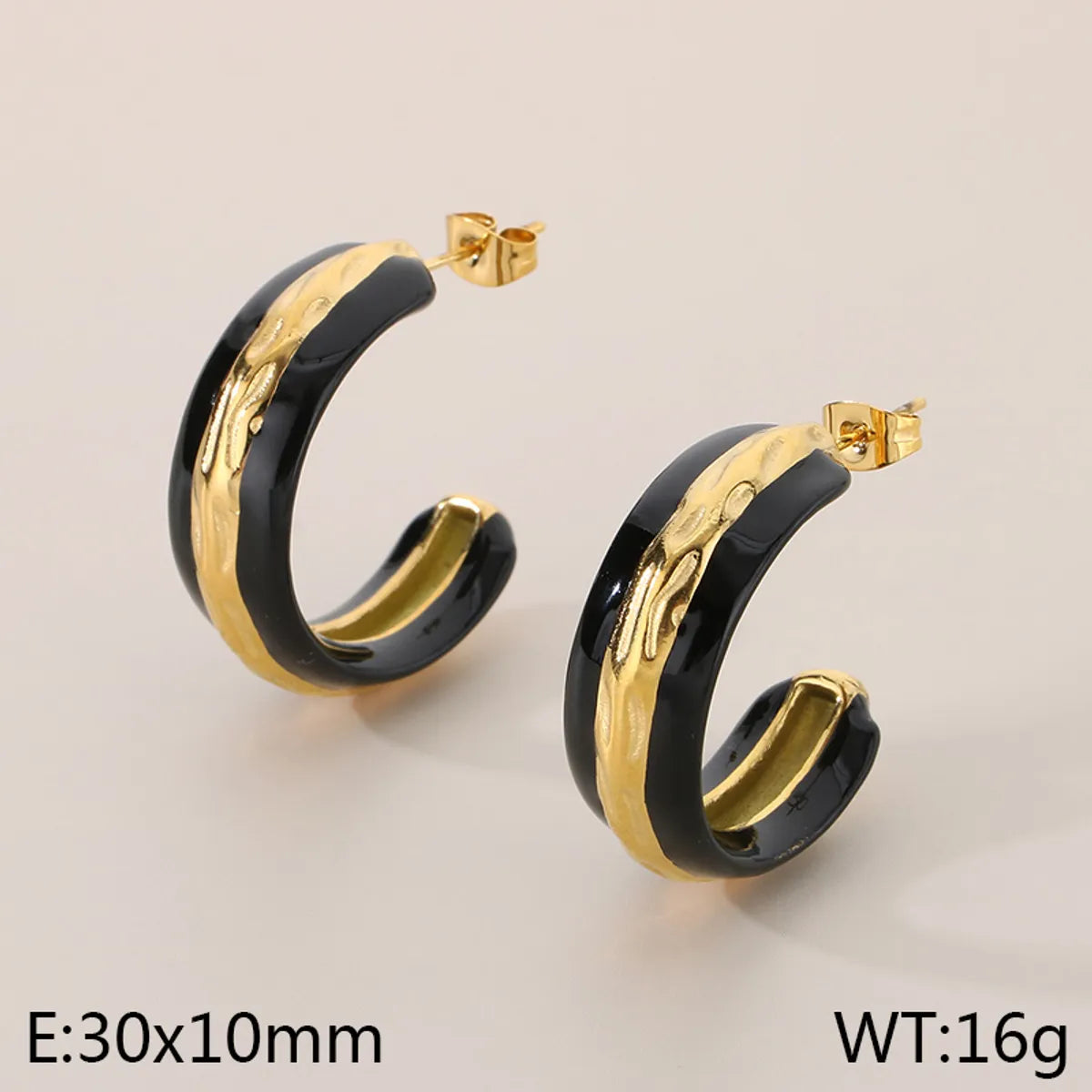 1 Pair Vintage Style C Shape Enamel 304 Stainless Steel 18K Gold Plated Ear Studs