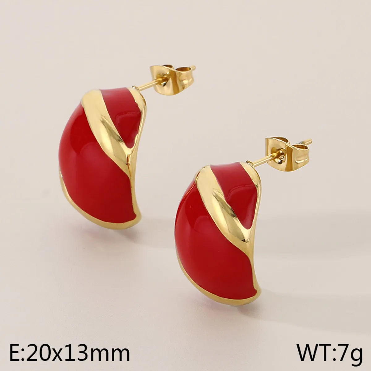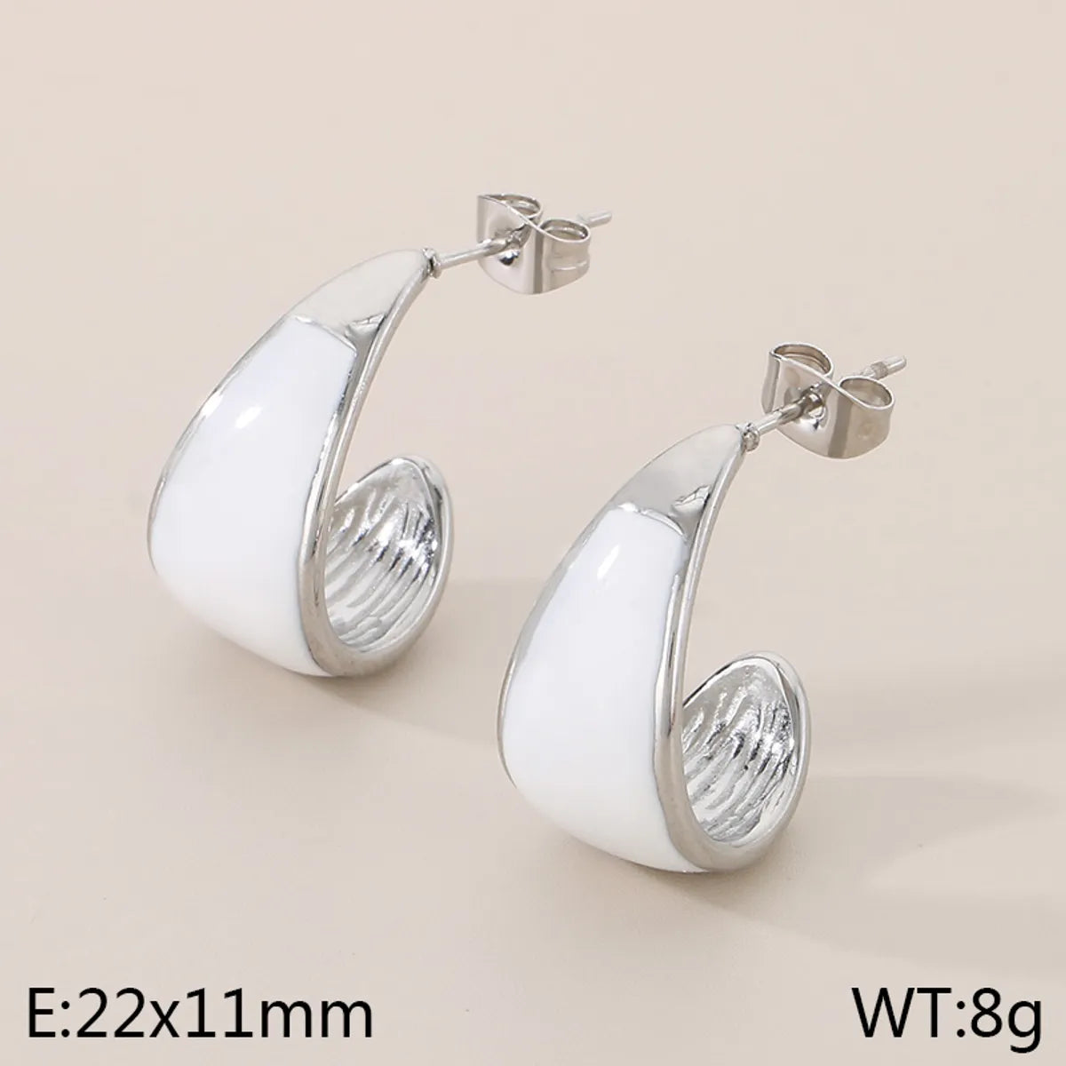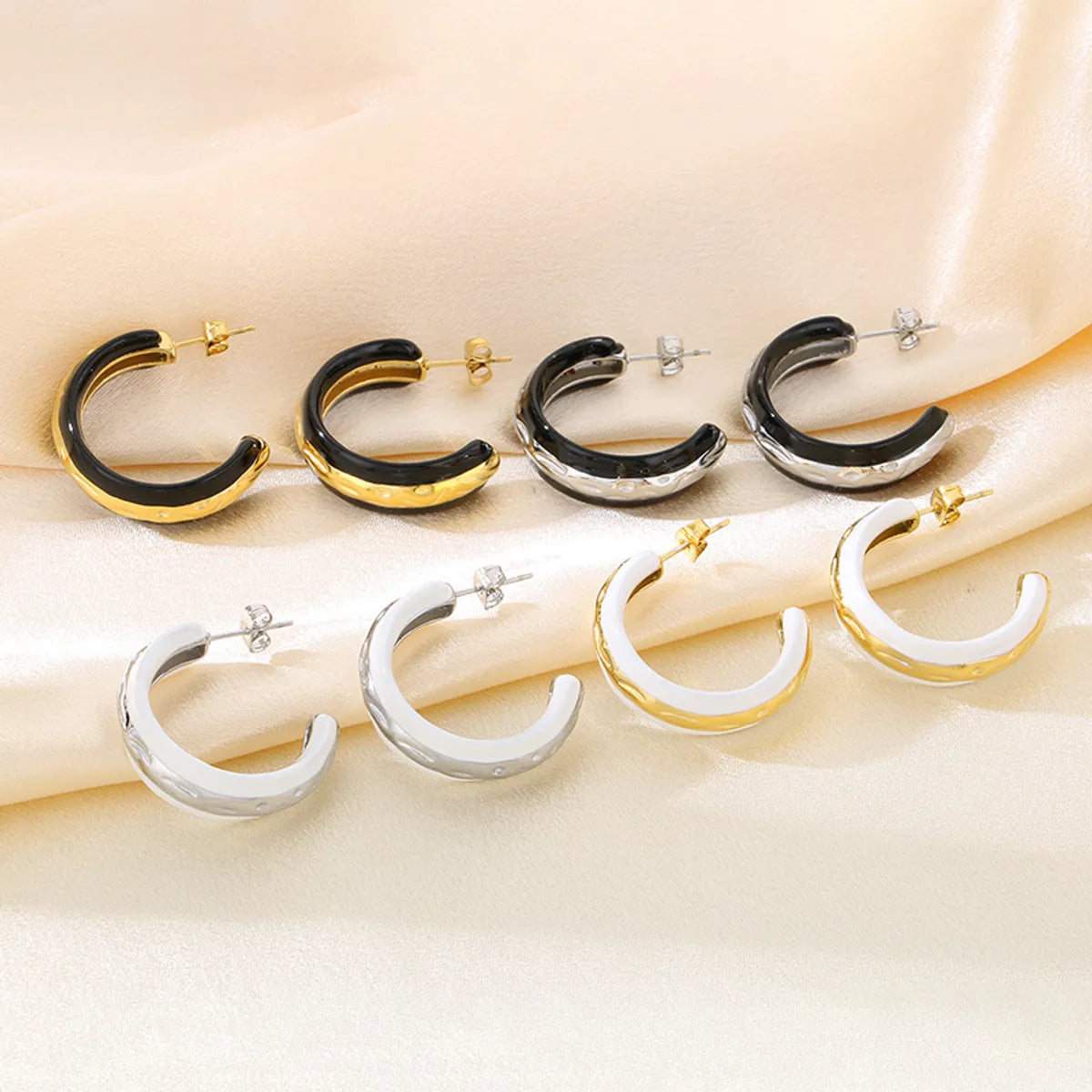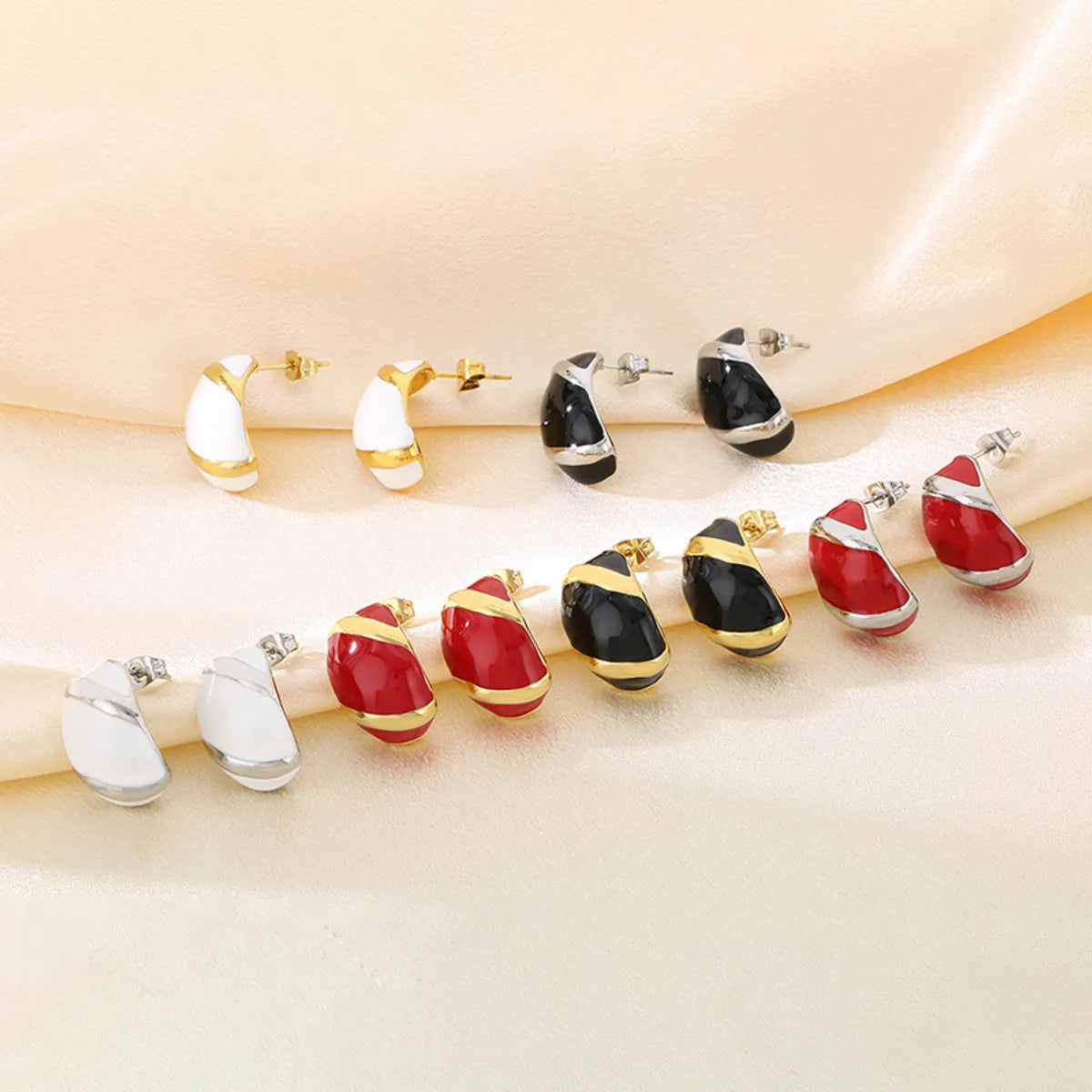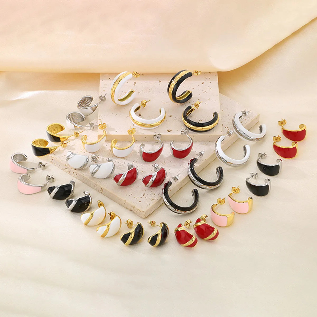 1 Pair Vintage Style C Shape Enamel 304 Stainless Steel 18K Gold Plated Ear Studs